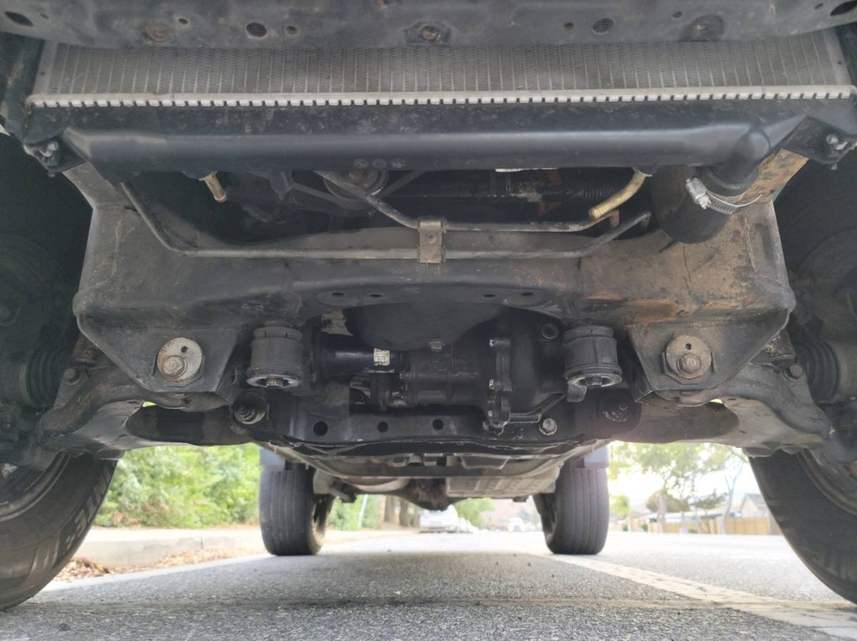 Things are a little shabbier in the cabin, where the leather upholstery has gone a bit south, requiring a cover for the driver's seat and a snood for the steering wheel. An airbag warning sticker and some sort of adhesive hook mar the dash, but neither should be a hassle to remove. On the plus side, the truck rocks its factory stereo, and has working A/C, as well as power windows and locks.