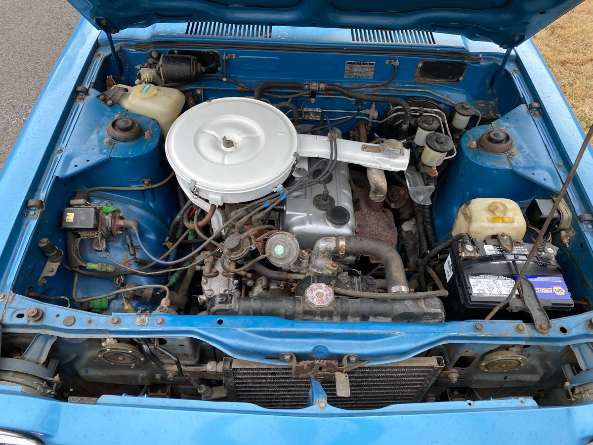 A peek in the engine bay shows the car to have the optional A/C and an air cleaner and cam cover that both look suspiciously fresher than their surroundings. That air cleaner especially looks like some sort of ghostly apparition with its seemingly fresh off-white paint scheme. Also new-appearing is the heat shield under the brake master cylinder so some work has been done here.