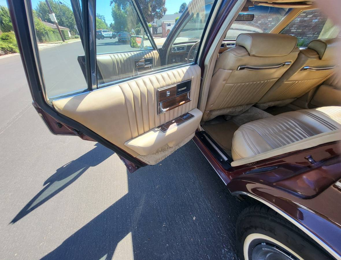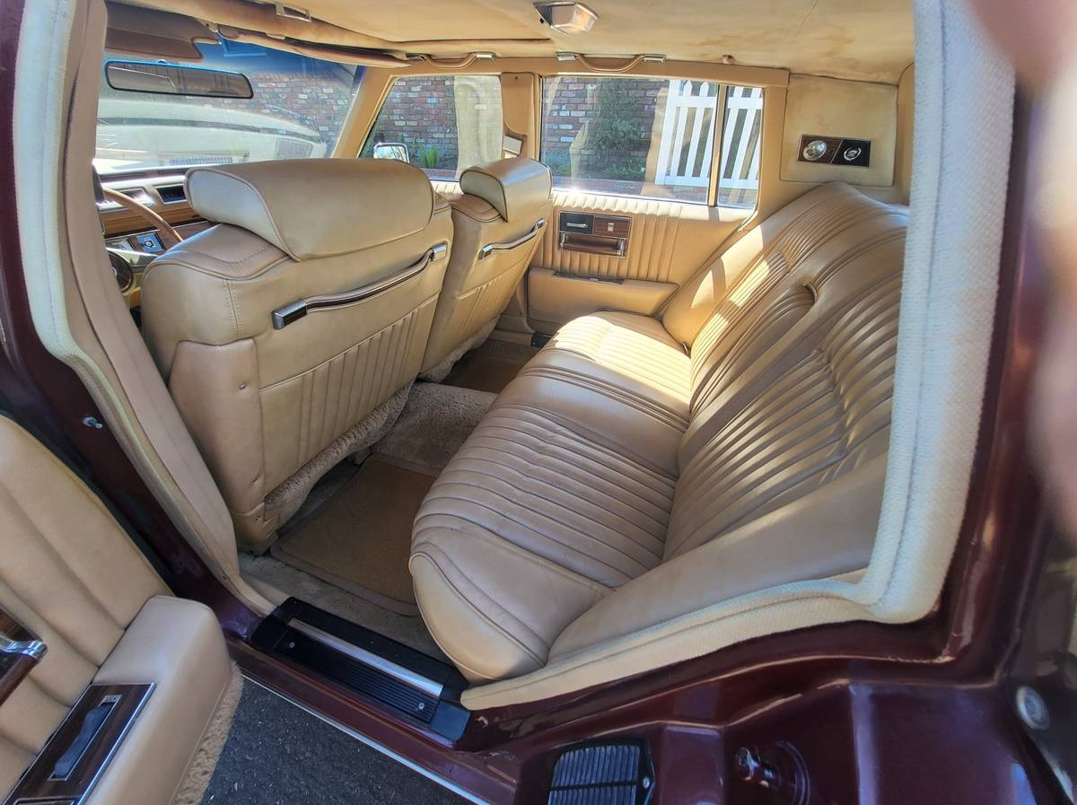 The interior is in great shape too, with leather that looks to have shined the asses of decades of Sansabelt slacks wearers. The only major downside here is some water staining in the headliner over the rear seat — perhaps the result of once-clogged moonroof drains.