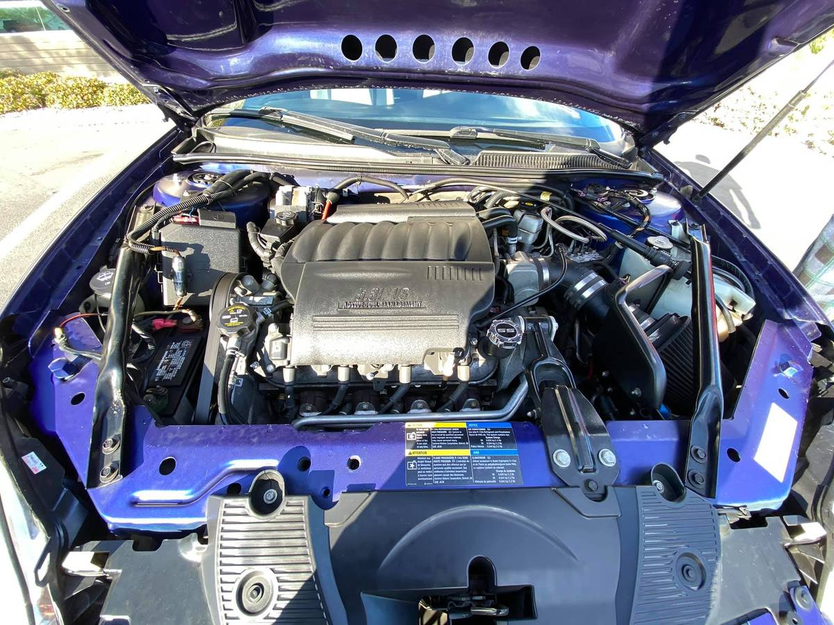 There's a modest 108,000 miles on this Monte's clock, and the car presents in fabulous shape for its age and that distance. The Laser Blue Metallic over Silverstone paint holds up with an as-new shine and the car carries all its appropriate badging. The simple five-spoke alloy wheels also look free of any marring and wear tires that appear to have plenty of tread left. Aftermarket additions to the car include a massive and likely non-functional hood scoop and Corvette-style flags on the nose.