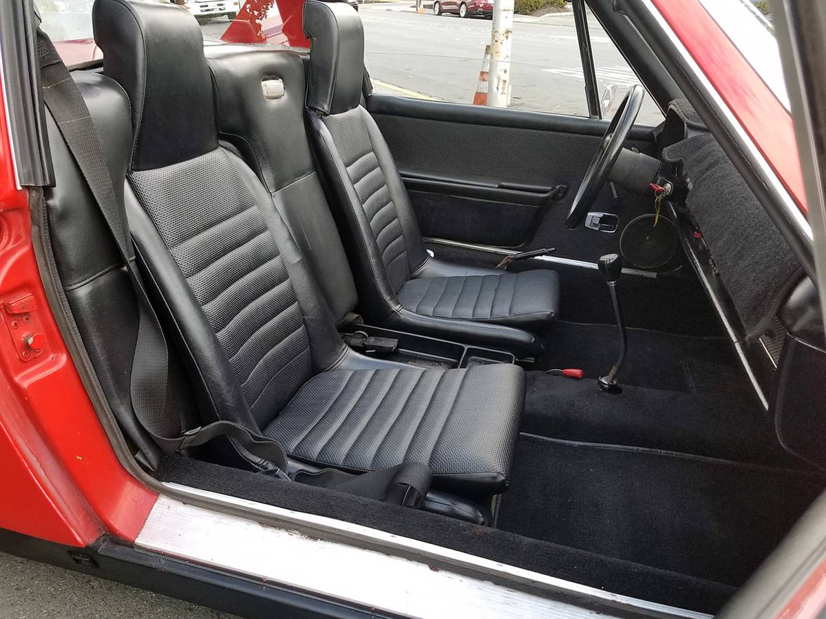 Seats and back panel are in good shape and appear to be out of a later car as both thrones are adjustable. The factory '71 interior would have had the passenger seat molded into the backrest, and a movable footrest instead of a separate seat. Of course, if you're going for authenticity, then this isn't the 914 for you.