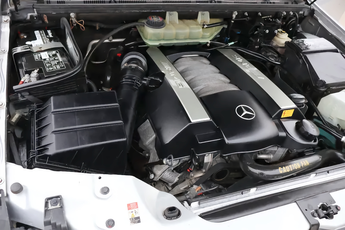 This being the big-grunt AMG, it's powered by a 5.4-liter M113 V8 with a plastic cover touting its AMG origins and 342 horsepower bellowing out below that. Transmission duties are performed by a five-speed G-Tronic automatic.