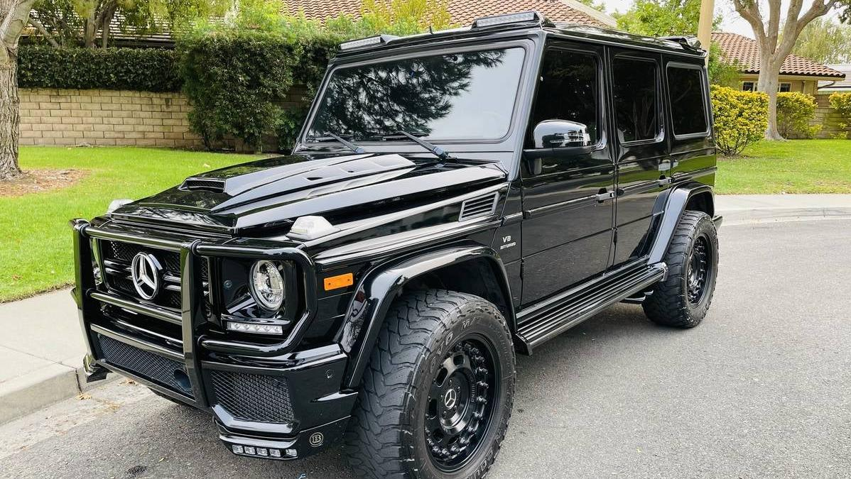 This one goes a step further in the bling department, as the ad notes $20,000 in add-ons including additional lighting elements, a Brabus hood bulge, and a rear wing that's just plain comical. Underneath, the truck rides on a three-and-a-half-inch lift kit and Rhino axles. Twenty-inch wheels are fitted with Toyo tires that stick out of even the G63's wide fenders and look like they probably drone on the highways.