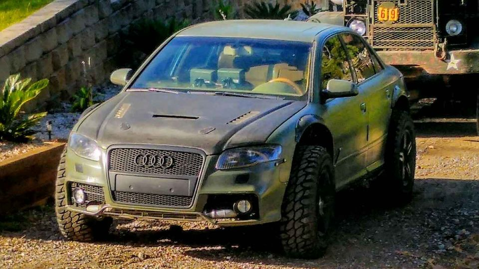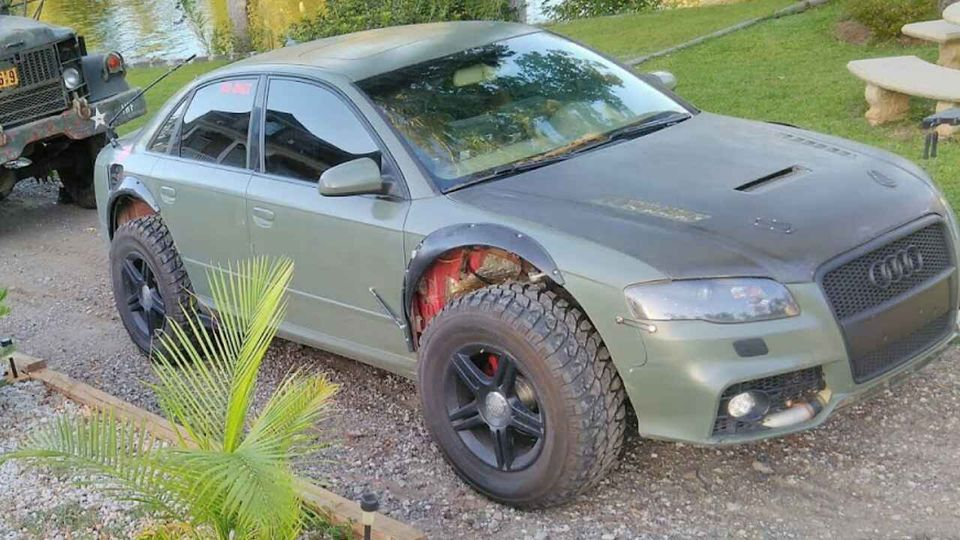 OK, I guess I'm on an off-road kick this time around. This Audi A4 is something crazy. The owner says he lifted the car two inches, then fitted 33-inch mud tires (after cutting the fenders). The car definitely needs some TLC, but it's all there — and even comes with real carbon fiber pieces. Even cooler, this isn't just another safari build that's just for the looks; it's daily driven and taken off-road.