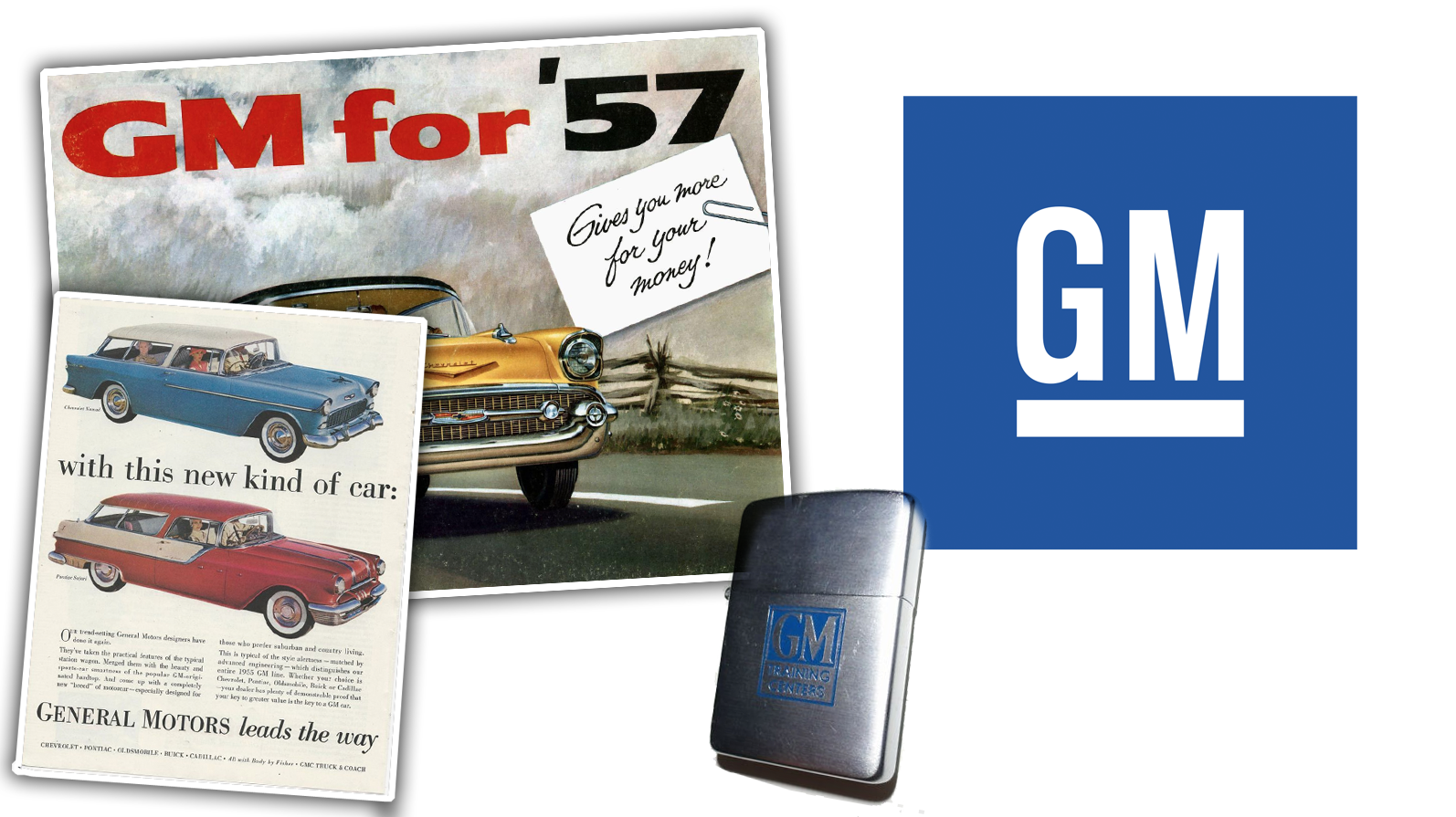 Really, though, what's more interesting is just how little GM actually used their corporate logo. On most advertising materials from the '50s and '60s and on, if GM was mentioned by name at all — instead of the much more recognizable names of their individual brands — its name would just be spelled out or the initials written in whatever typography fit with that particular application.