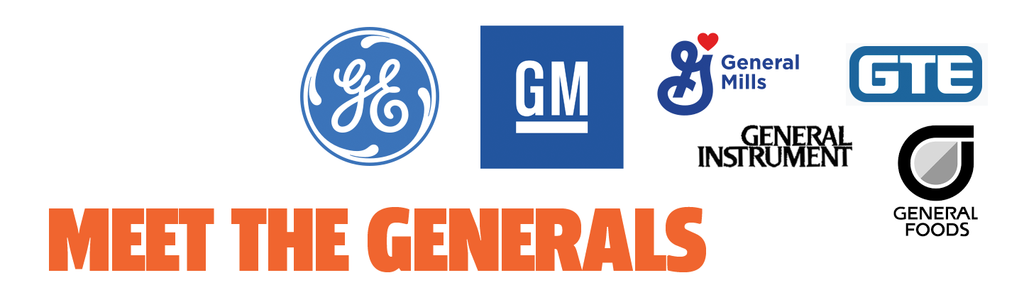 For some reason, lots of these "General" companies seem to favor blue for their logo color, though I'm not entirely certain why. The idea behind the "general" thing was a sort of power through deliberate vagueness — the idea that the company covered everything in their given market, and as such could do anything. It's a similar mentality that gave us company names with "standard" in them, like Standard Oil or American Standard.