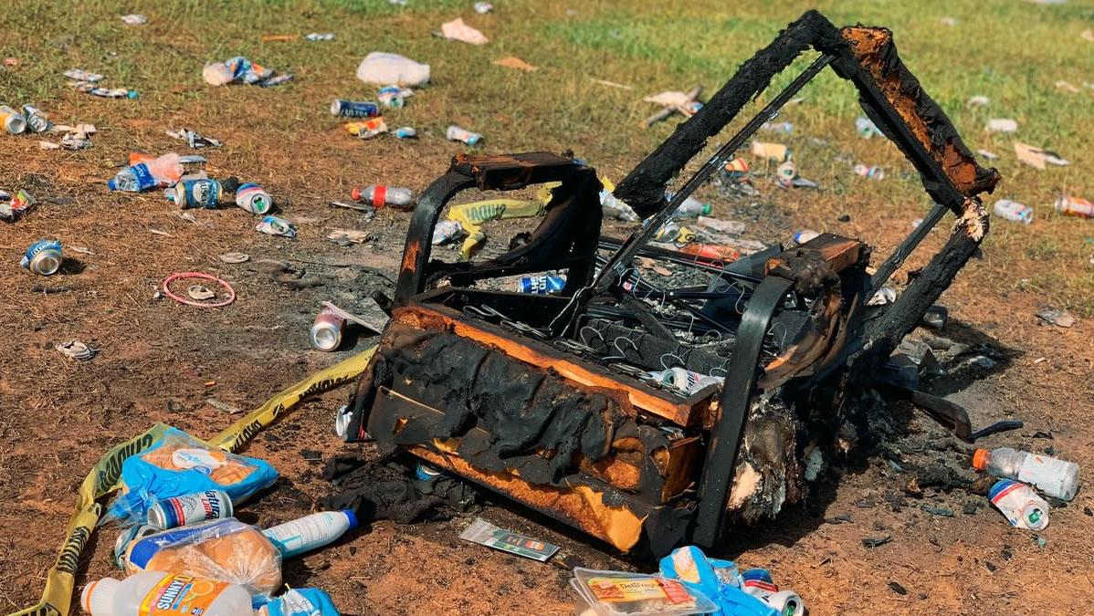 At least those still look... relatively usable? Like they can be cleaned of general race car filth and campsite shenanigans and placed in a new, loving home (or maybe just someone's front porch). Some armchairs didn't make it out so unscathed.