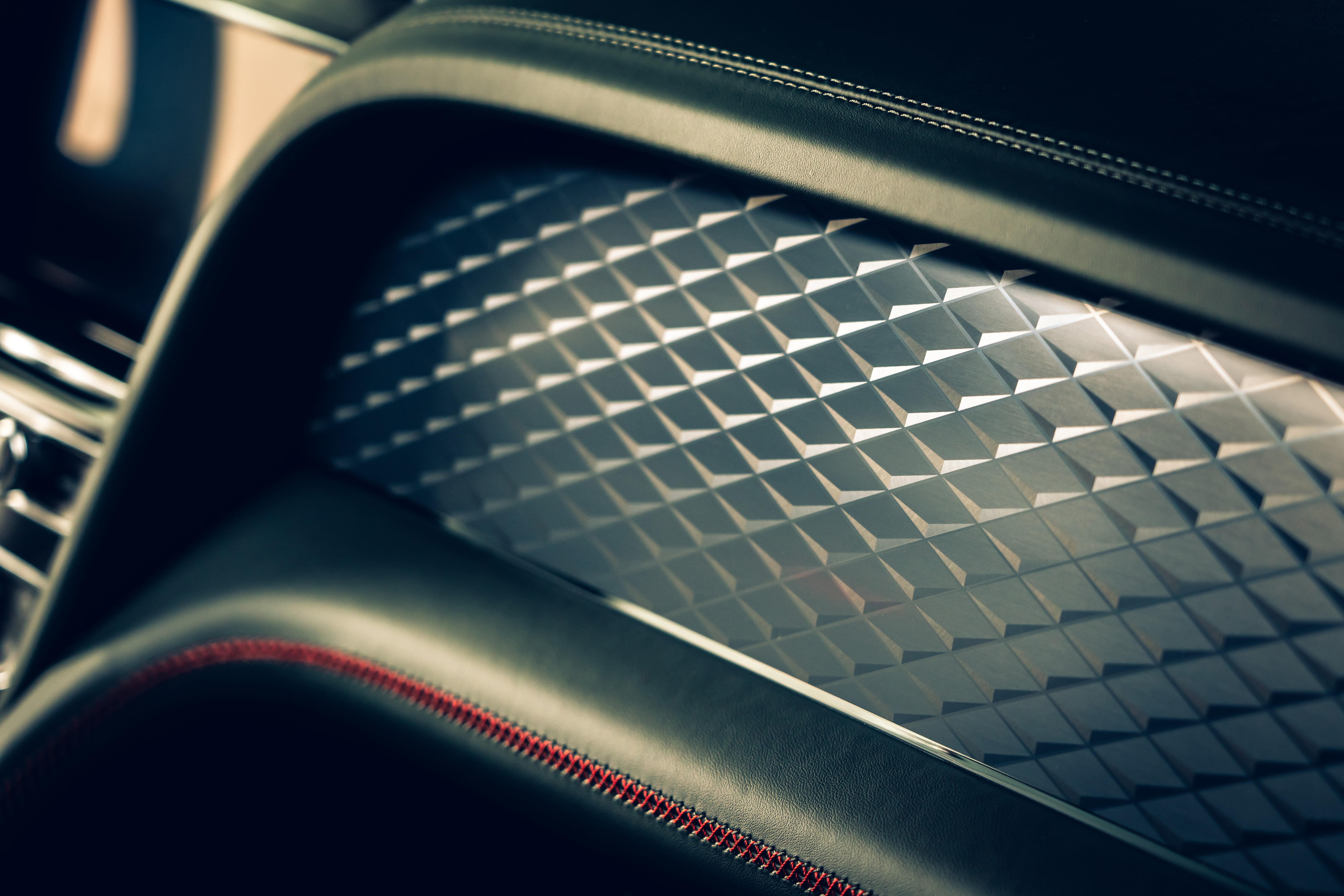 The diamond-etched aluminum paired with it for these pictures kind of plays off the quilted leather and gives the whole cab here a very reptilian vibe. But let's all agree that it wasn't weird for me to be thinking about cucumbers staring at this much greenery.