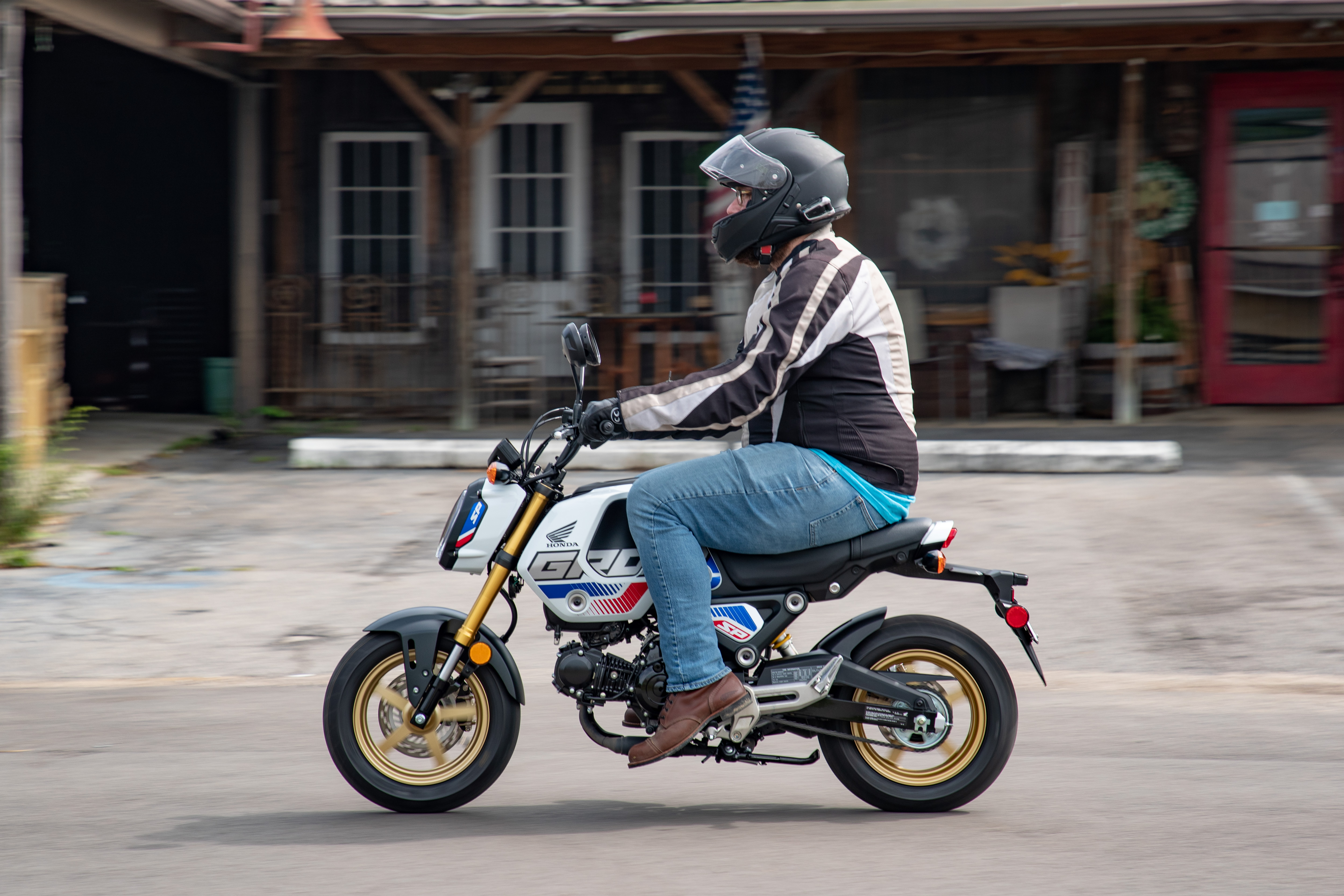 For newer two wheeled friends, I might recommend getting the ABS-equipped Grom. The anti-lock is only on the front wheel, and it isn't cornering-sensitive, but it does work with an IMU to make it anti-stoppie. Braking is the one point of the Grom which might be intimidating for newer riders. The 12-inch tires are very prone to lockup under hard braking, and because the bike is so small and light, rider weight is a much higher percentage of the overall package, so if you don't know how to shift your weight under braking, you could potentially end up over the top of the handlebars.