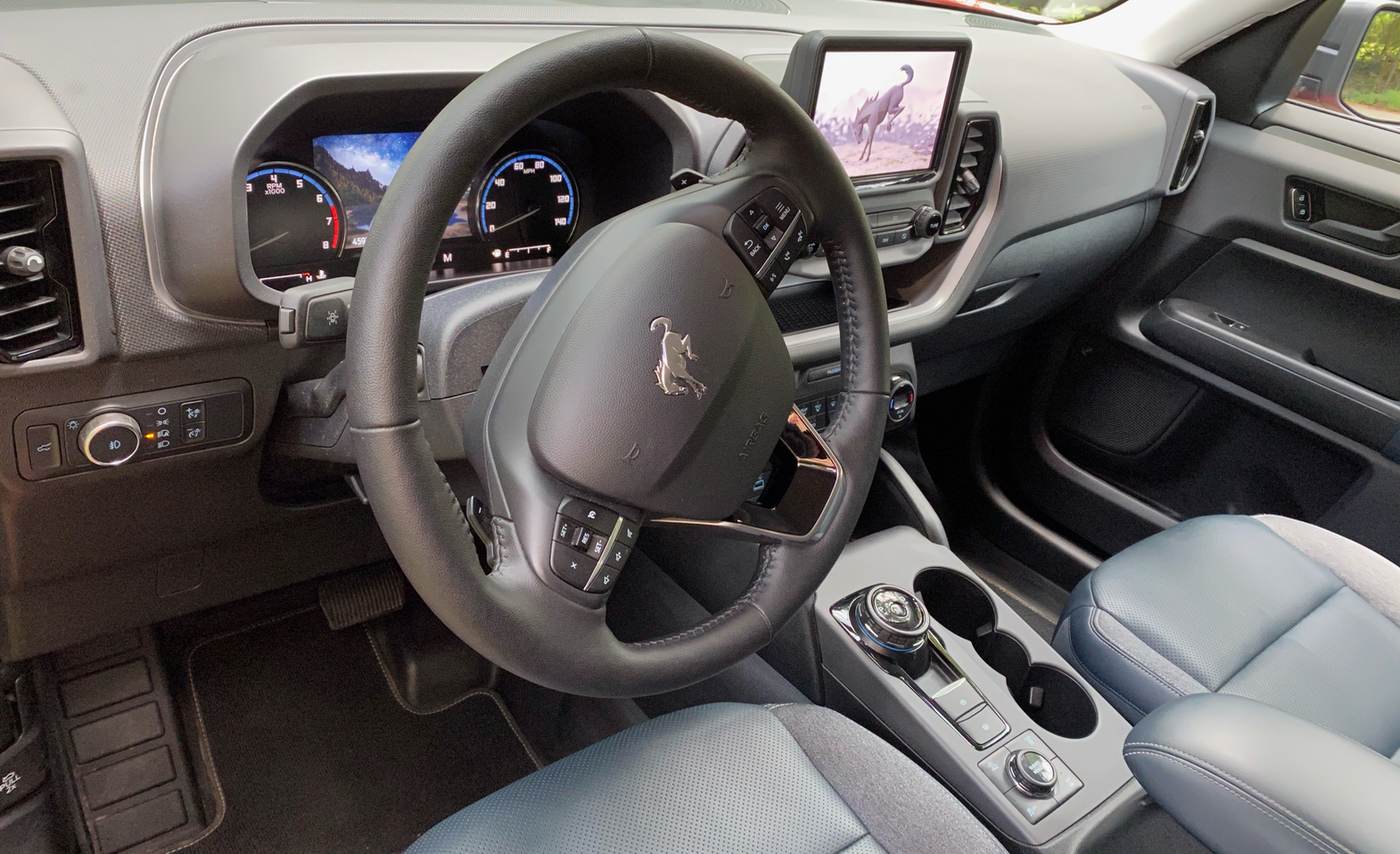 And, on these magically-smooth asphalt ribbons, the Bronco Sport drives...just fine. Despite all the posturing as a burly rock-scrabbling brute, from the inside you don't have to keep pretending, as it's plenty smooth and quiet and comfortable in there.