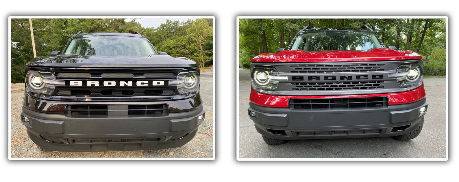 The front end of the Bronco Sport is defined by that grille-face, which is differentiated between trim types and provides some nice variety among the various Bronco Sport editions. I think I'm still more in the more rough First Edition camp here, with the tighter grille mesh (only the lower half of each is actually open for air intake, by the way) and the matte finish, but I do like the bold white B R O N C O badging on the Outer Banks one.