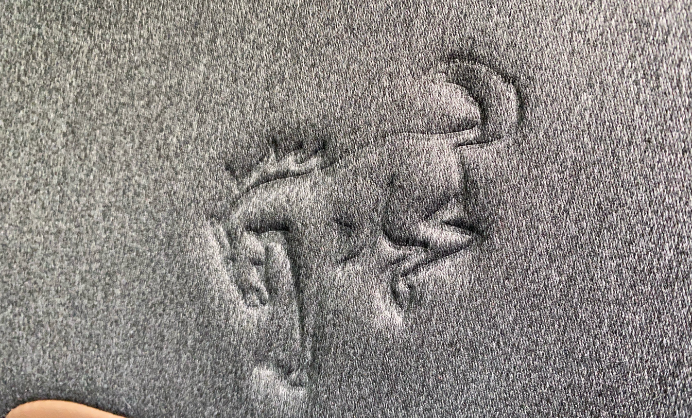 The Outer Banks edition one was more upmarket, with brown leather detailing in the seats and embossed rearing horses in the headrest: