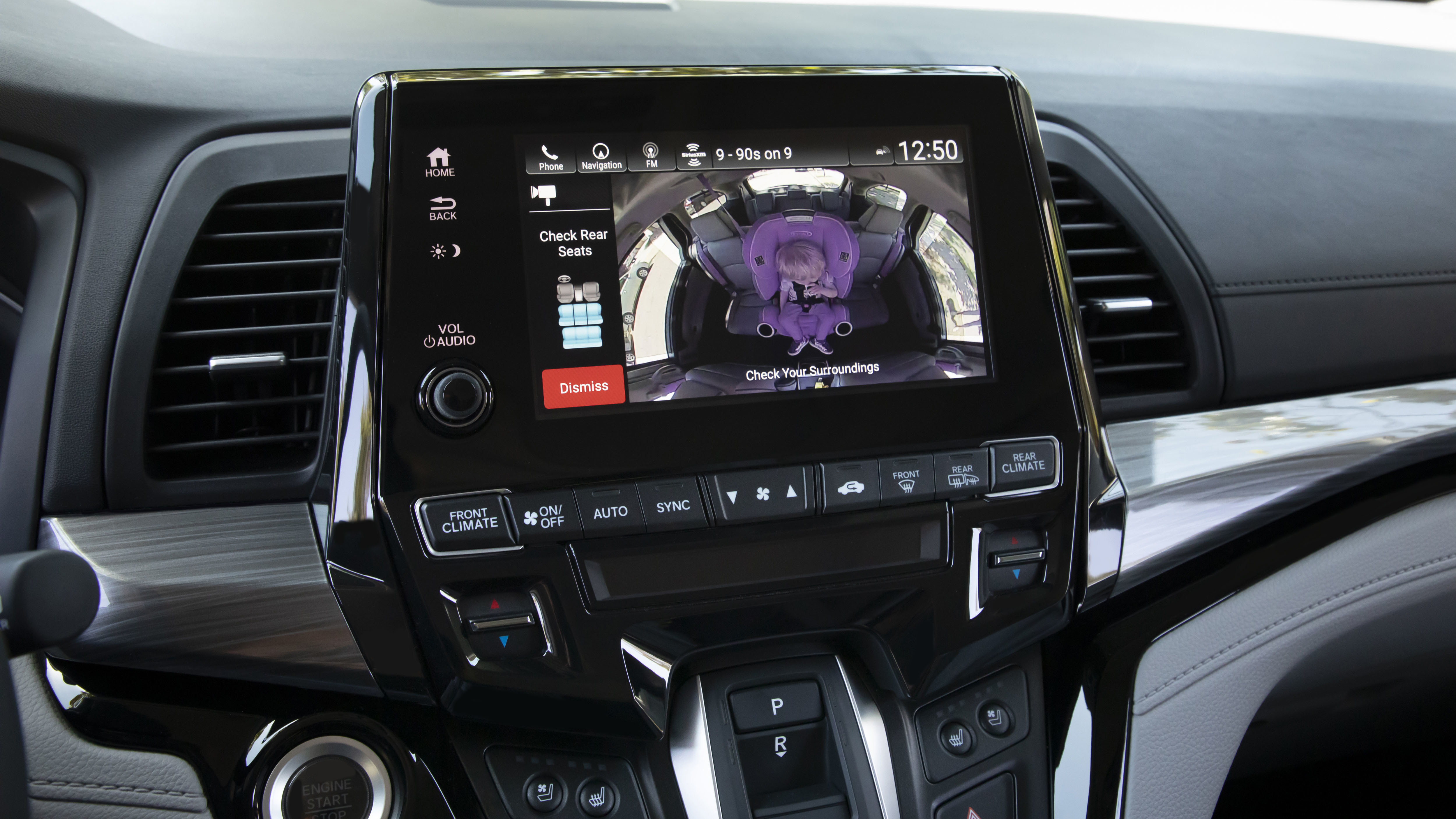 Honda's child surveillance and communication features on the Odyssey are incredible. Vans in the upper reaches of the lineup get Cabin Watch, which is basically a camera that looks down at the back seats. If there are kids back there in a car seat, you can make sure they're still alive and sleeping, not asphyxiated and stone dead as you imagine them to be every time they're quiet in the car during the rear-facing-seat stage of their lives.