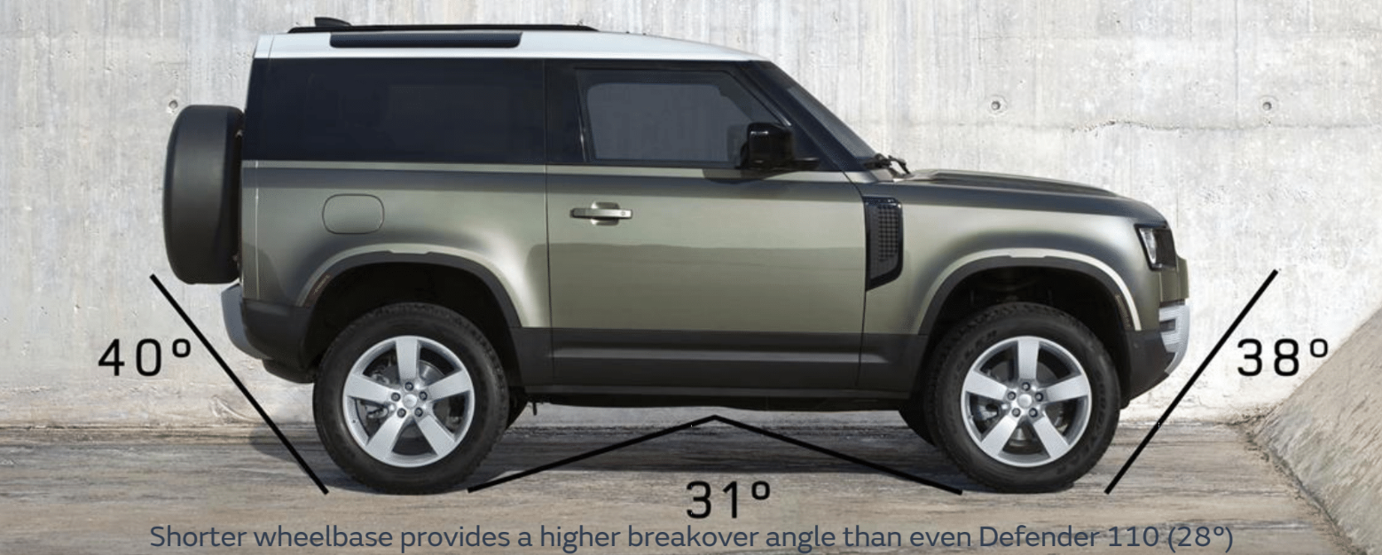 "Higher breakover angle" is an engineer's way of saying that the Defender 90 can over more terrain without scraping.