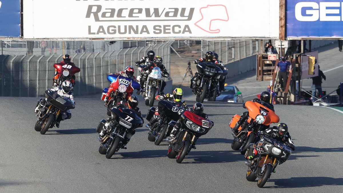 I have never in my life been so amped for a brand new class of motorcycle racing. MotoAmerica's Drag Specialties King of the Baggers inaugural race at Laguna Seca looked awesome from the word go, and thankfully the on-track product lived up to every bit of the pregame hype. There is something so appealing about watching a dozen big beef boys with giant thumpy V-twins hauling ass around a legendary racetrack. America, Fuck Yeah, indeed.