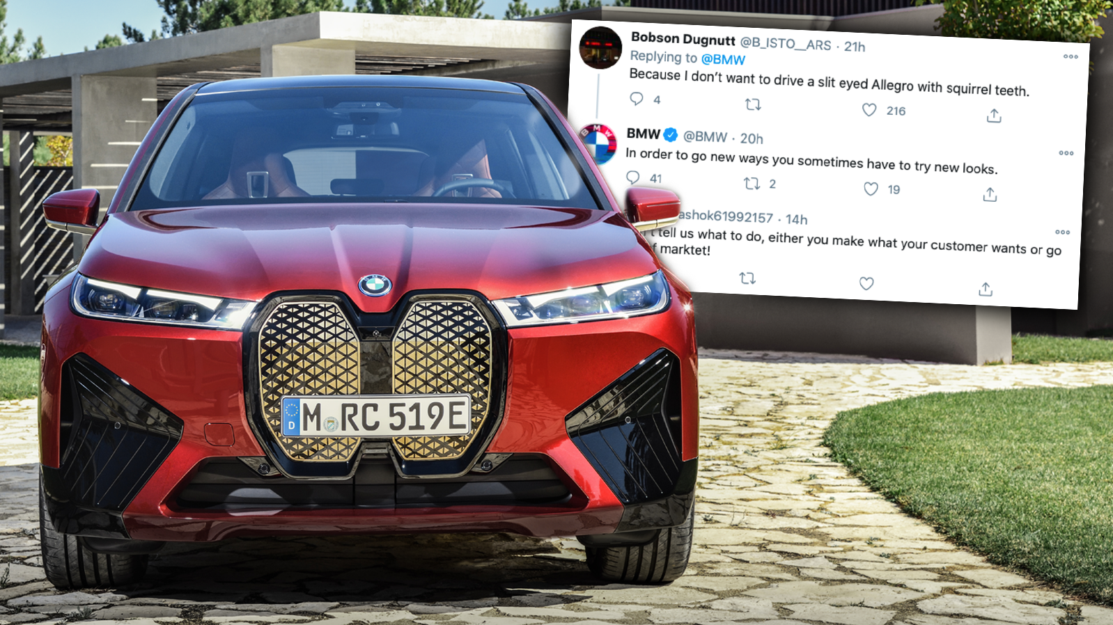 In that Twitter thread, the commenter who calls the new iX a "slit eyed Allegro with squirrel teeth" gets this response from BMW: "In order to go new ways you sometimes have to try new looks."