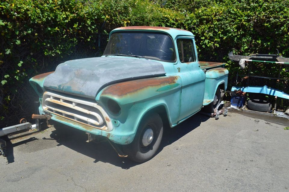 This truck is advertised as a Chevy 1500, but Chevy wasn't really using that number yet in 1957. It's described as a step side, but that too wasn't yet a model name. No, this Chevy is called something far more modern-sounding: Task Force.