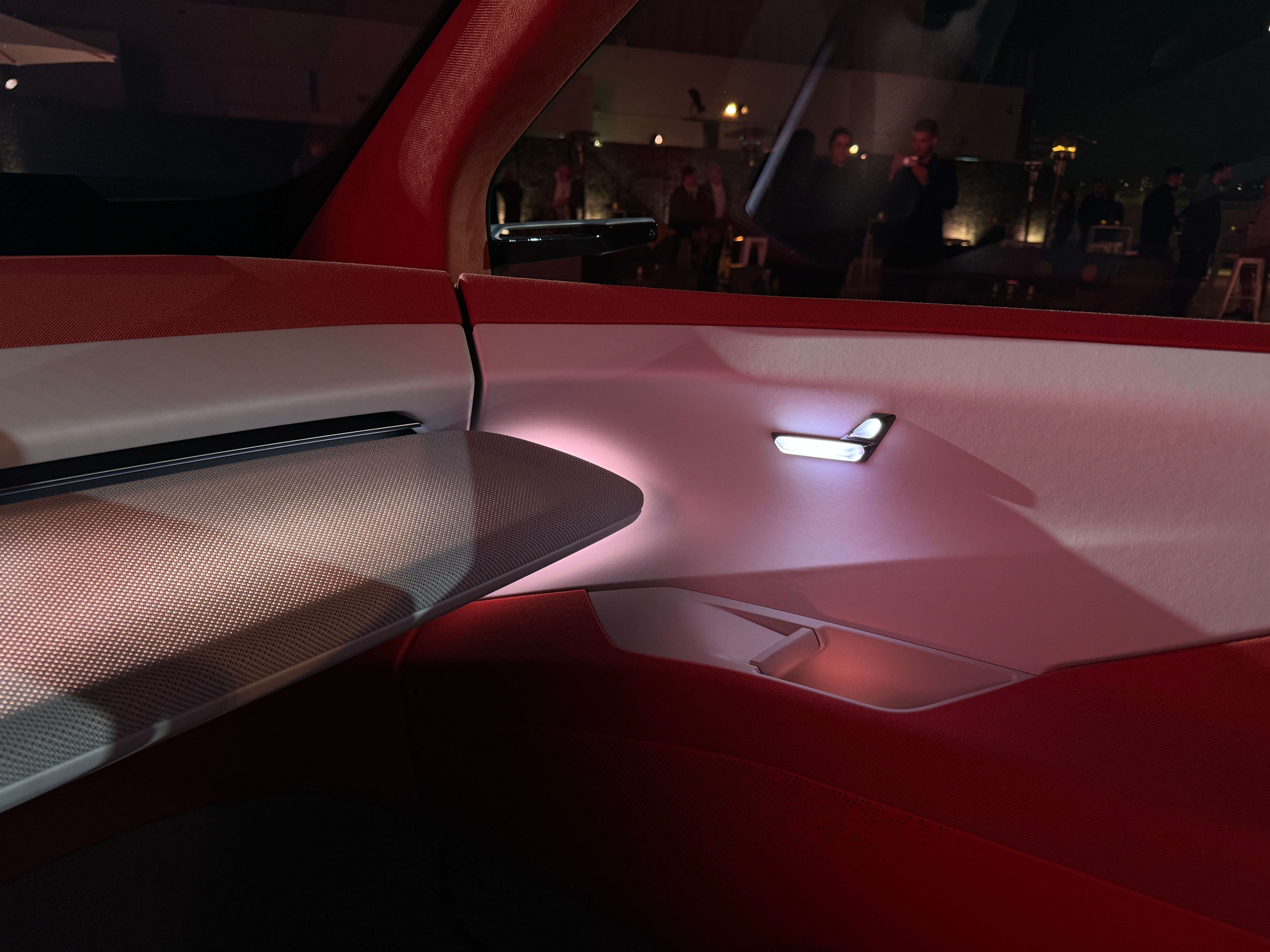 There's some wonderful ambient lighting going on, including in the dashboard panel itself — animated light shines through the fabric in reaction to infotainment inputs.