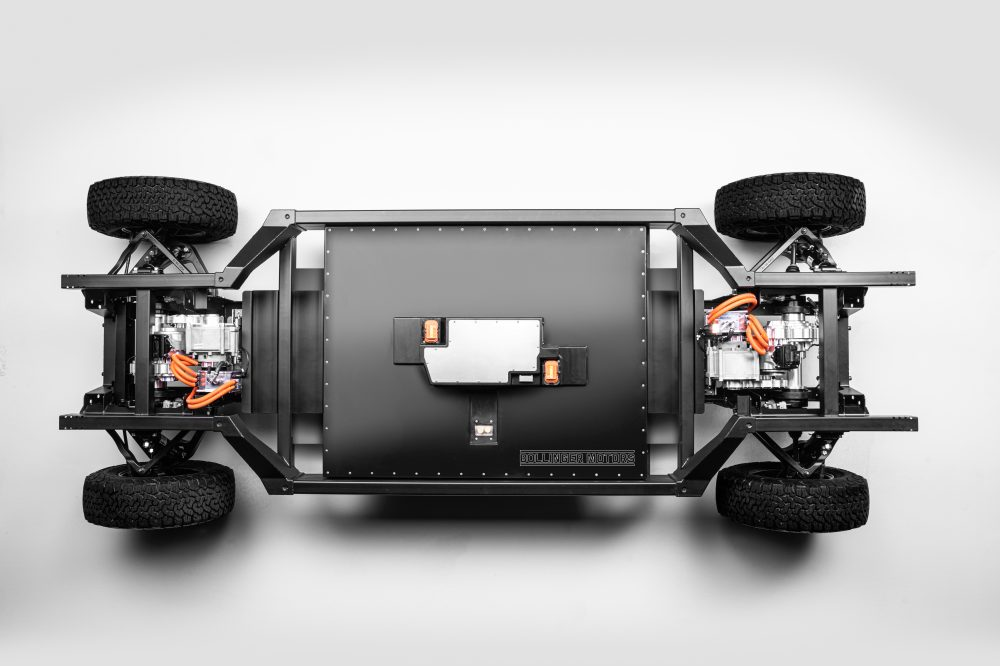 Bollinger currently only has plans to sell the electric B1 SUV and B2 pickup truck, which are built on a shared dual-motor chassis making 614 HP and 668 lb-ft of torque with a 120 kWh battery pack. With a B1 or B2 on top, that's enough for a range estimate of around 200 miles.