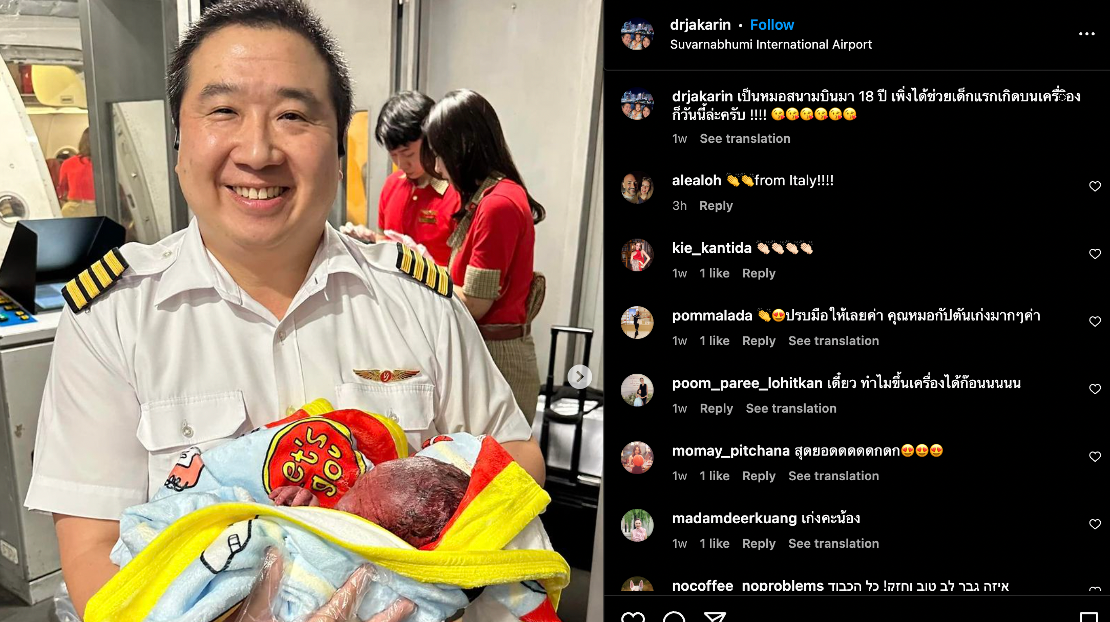 "I have been a pilot for 18 years," Sararnrakskul posted on Instagram. "I just helped a newborn baby on the plane."