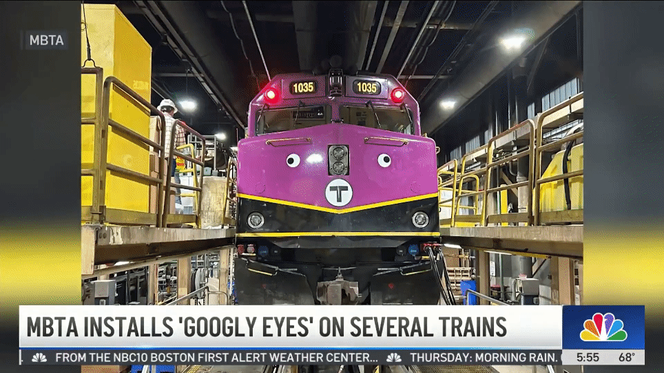 The stingy bigwigs at the MBTA claim that they couldn't decorate the entire fleet of MBTA trains with googly eyes without citing a reason. They only placed stickers of large plastic googly eyes on five trains: four trains on the T's green line, and one train on the commuter rail. While it is a little win to get googly eyes on some of the city's trains, it's disappointing that only five of the region's trains received the ocular additions. I guess some whimsy is better than none. I hope more aspects of life become similarly whimsical, since so much of life has been feeling heavy for so many Americans recently, little changes like this can brighten up peoples' day.