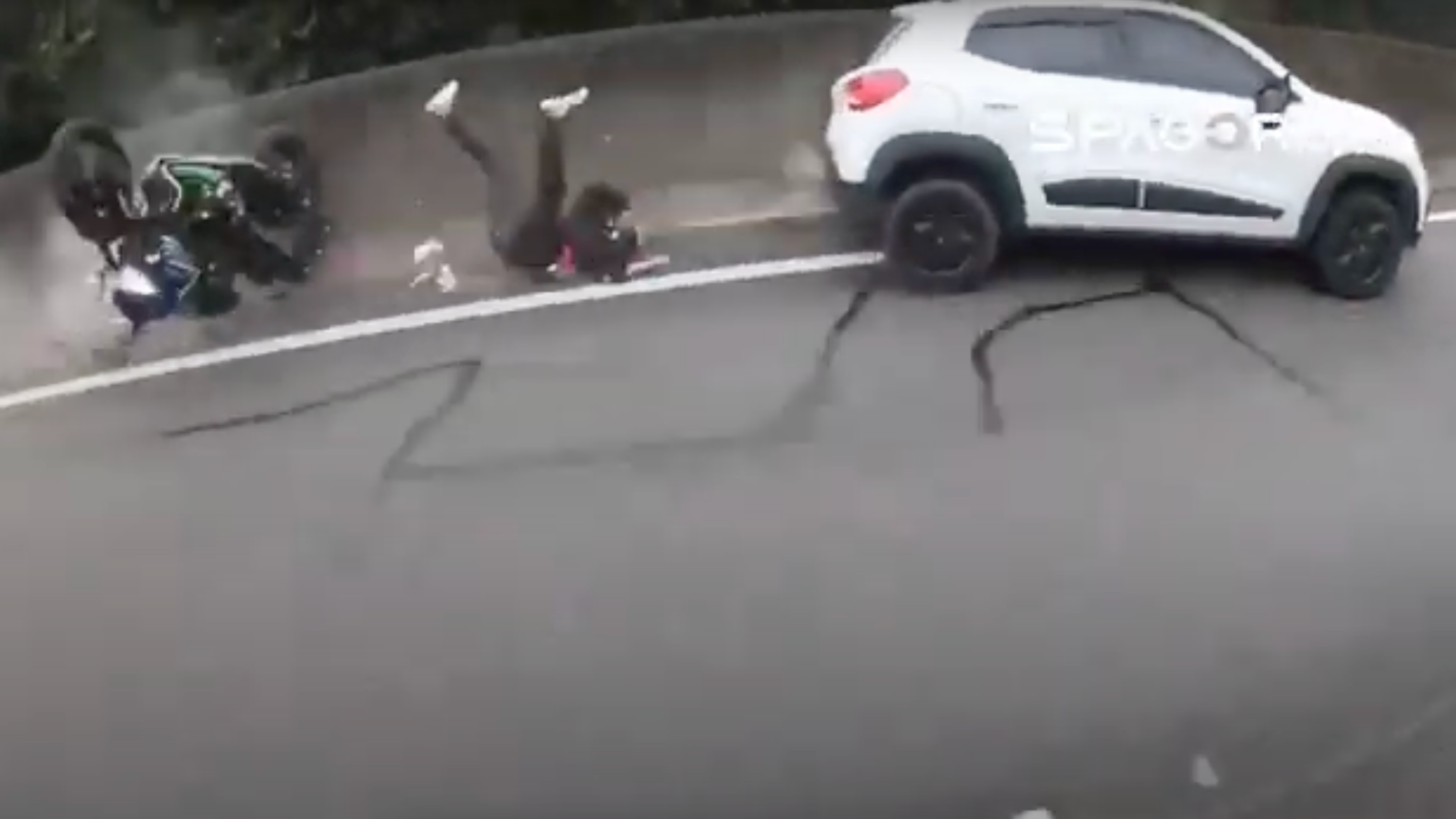 In the video that you can watch below, Carscoops reports the driver of a Brazilian-market Renault Kwid suddenly swerved to the left while driving among a group of motorcycle riders. In doing so, the driver who G1 identified as Cleverton Lima Vindilino hit one of the riders and knocked them off their bike. The good news is, they lived and weren't hit by any other cars on the road. Unfortunately, they did not escape entirely unharmed and ended up hospitalized with a broken leg.
