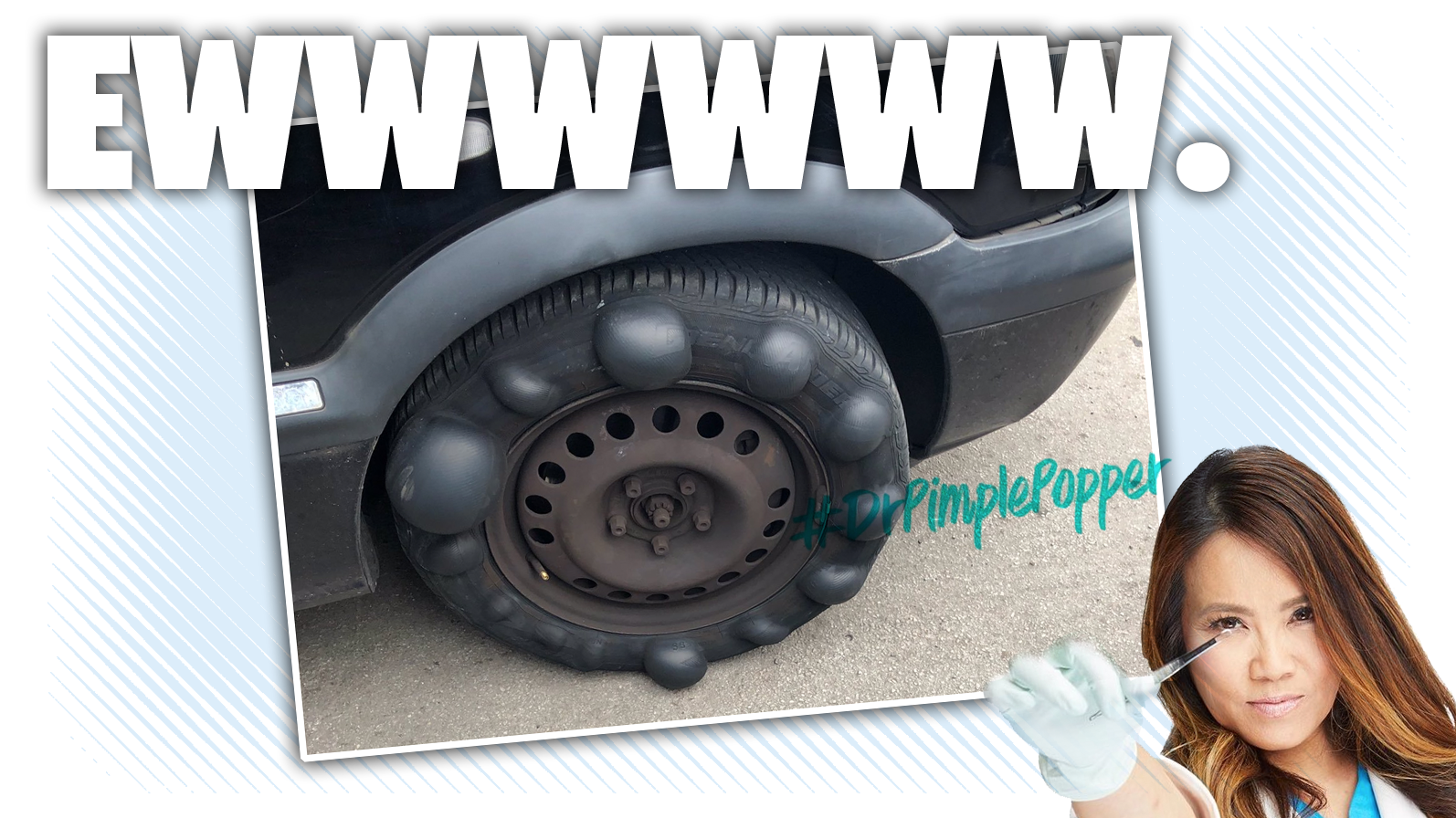 So that tyre, as they hilariously spell it, does not look particularly safe. What's going on here isn't a bunch of tire cysts or rubber lipomas, but rather are tire sidewall bubbles, which are usually caused by some sort of impact damage.