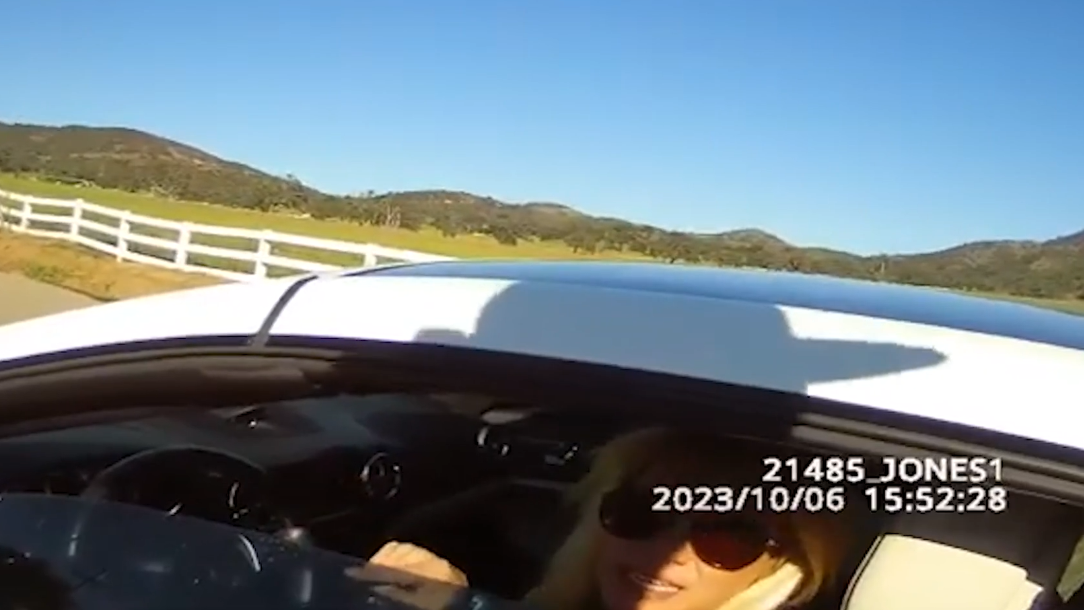 The icon of a generation has been pulled over before in the same area by the same police officer two times previously this year, according to the cop's claims in the 'body worn video' account. It's tough to tell exactly what she's saying to the police officer, but I think early in the conversation she says something very funny; "It feels like my butt is about to pop out my nose."