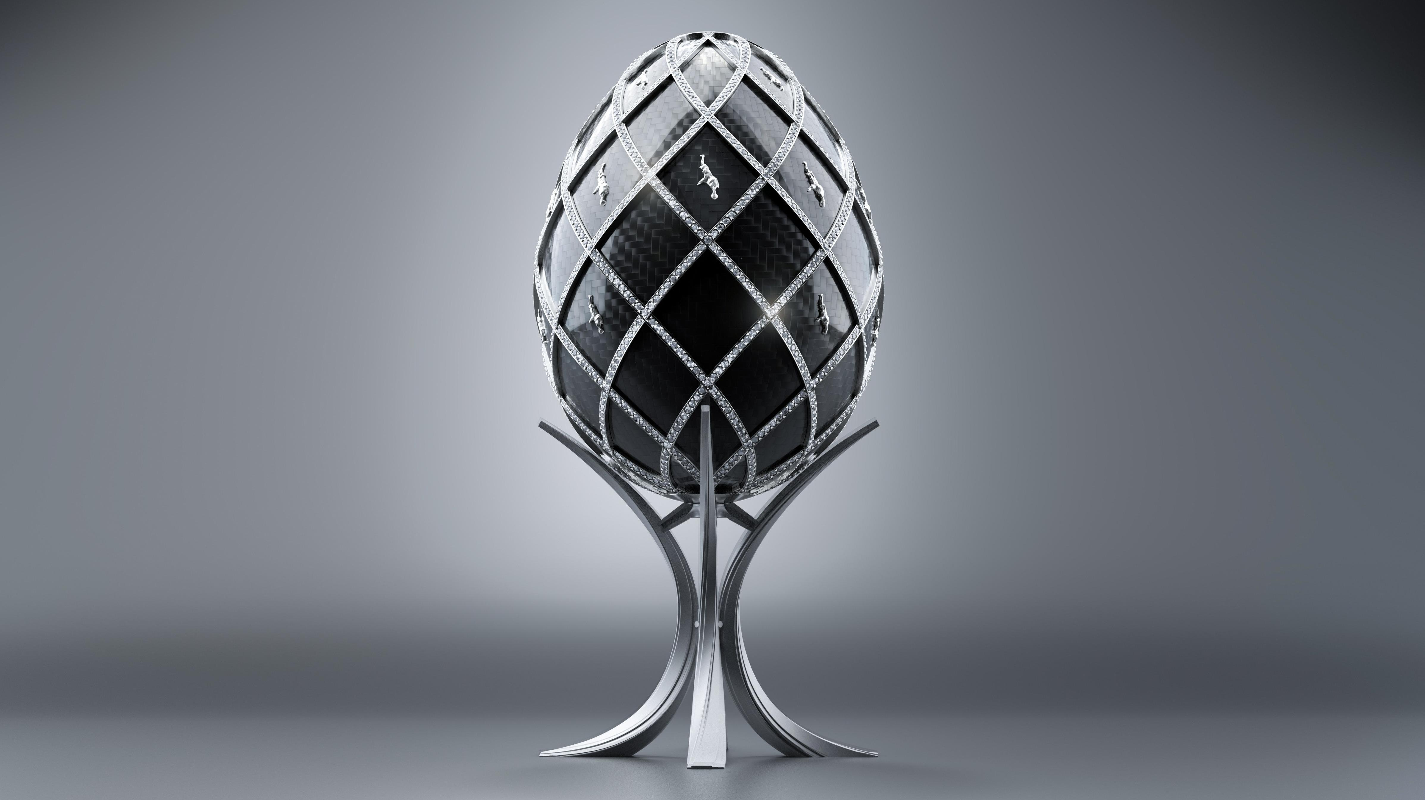 The eggshell of the Royale Edition, made from carbon fiber and intricately crafted into the perfect egg shape during a long and complex process, is completely free from disproportion or imperfection. It's encased within a sterling silver diamond weave lattice, gently angled downwards to a curved base portraying movement and echoing Asprey's heritage in jewelry as well as the ornate furniture designs of Carlo Bugatti and the Art Nouveau, an era significant to both brands.