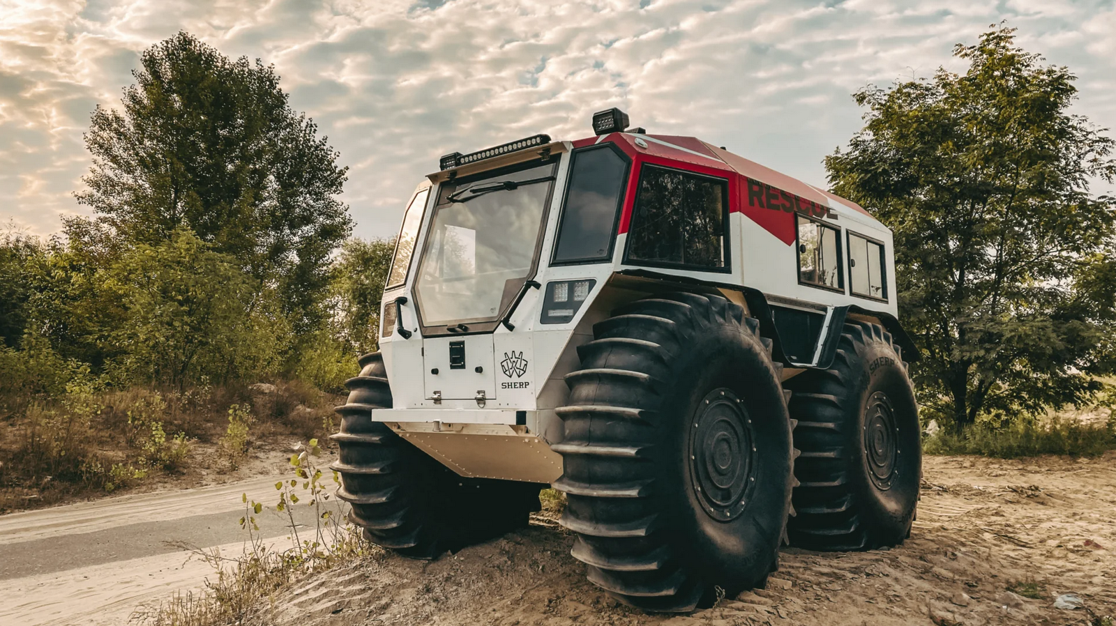 Giant tires. No suspension. Diesel engine, and the whole thing floats. It's gotta be a Sherp. Super aesthetically Burner-appropriate and even if the mud turns into a flood, you're golden with this lil fella. Normally, I'd say that if Rich Rebuilds buys something, you definitely shouldn't, but in this case I'm doing a 180 on that. Definitely buy a Sherp.