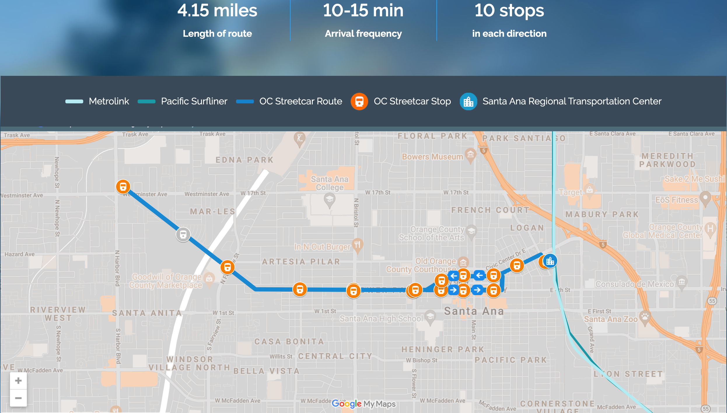 First approved in 2014 by OCTA (Orange County Transportation Authority), the streetcar will run just over four miles from Santa Ana to nearby Garden Grove. It's planned to be completed by 2024 with a half-billion-dollar price tag.