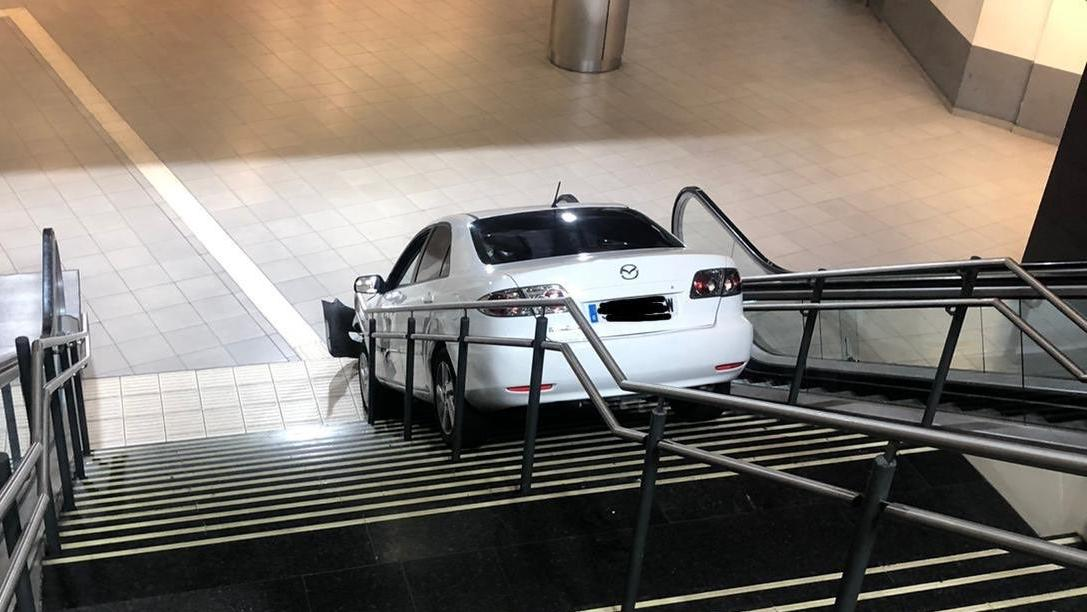 The car got stuck on the stairs at Plaza Elíptica station. The thief escaped, but was arrested soon after.