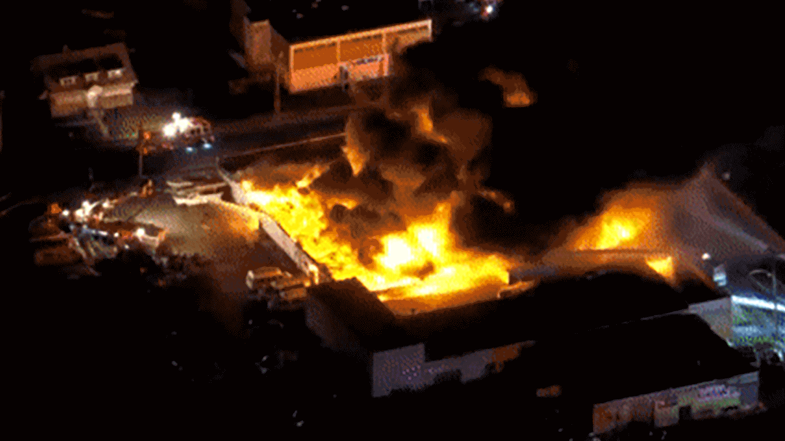 Firefighters on the scene reported hearing small explosions inside the building as cars went up in smoke and said they saw a huge ball of fire shoot into the air during the blaze.