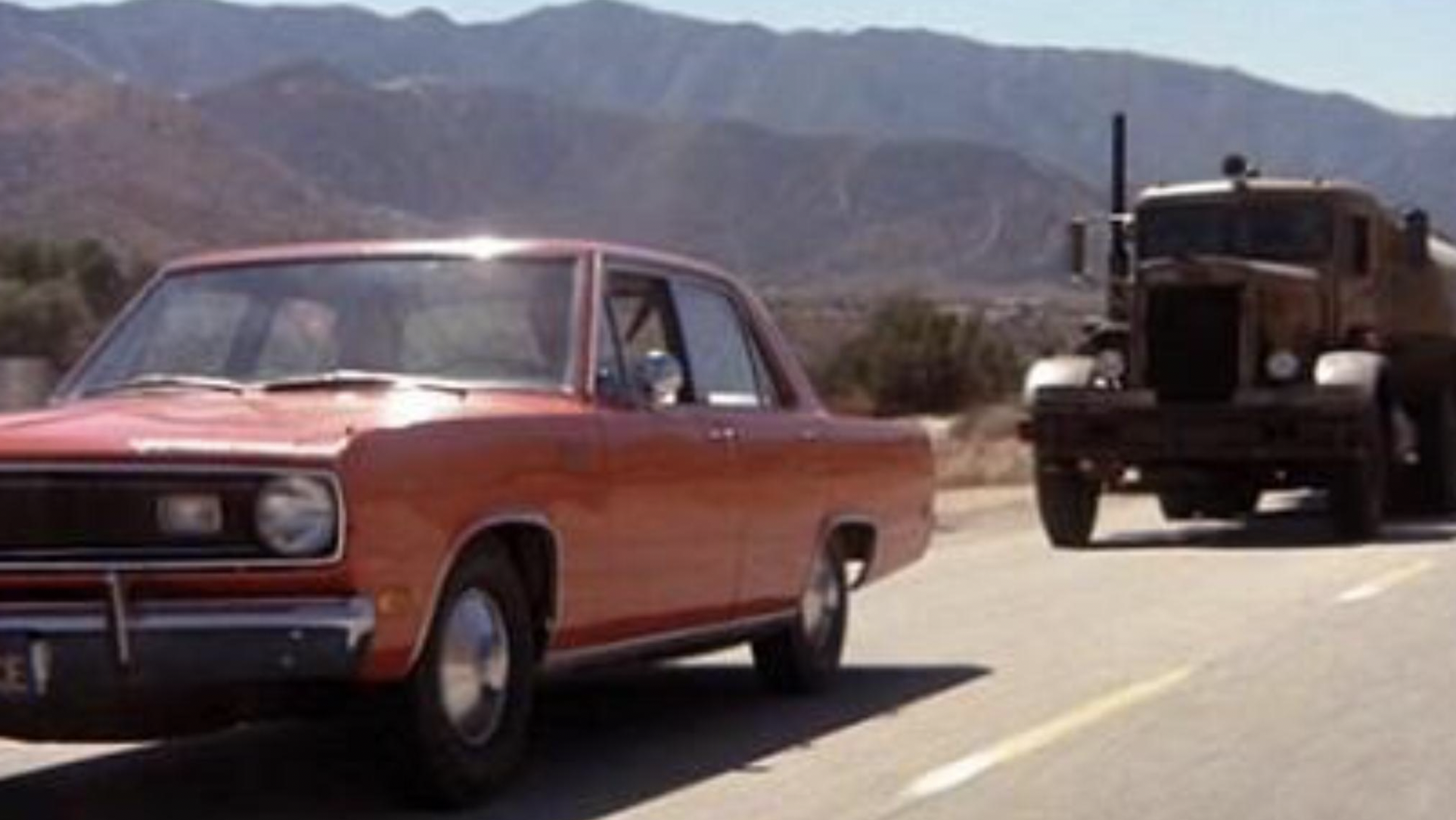 That little red sedan and the big brown tractor trailer have it out in the desert, and trust me... you'll be on the edge of your seat the whole time. Oh, and you'll never be able to look at a rust 18-wheeler the same way ever again. They cannot be trusted, as it turns out.