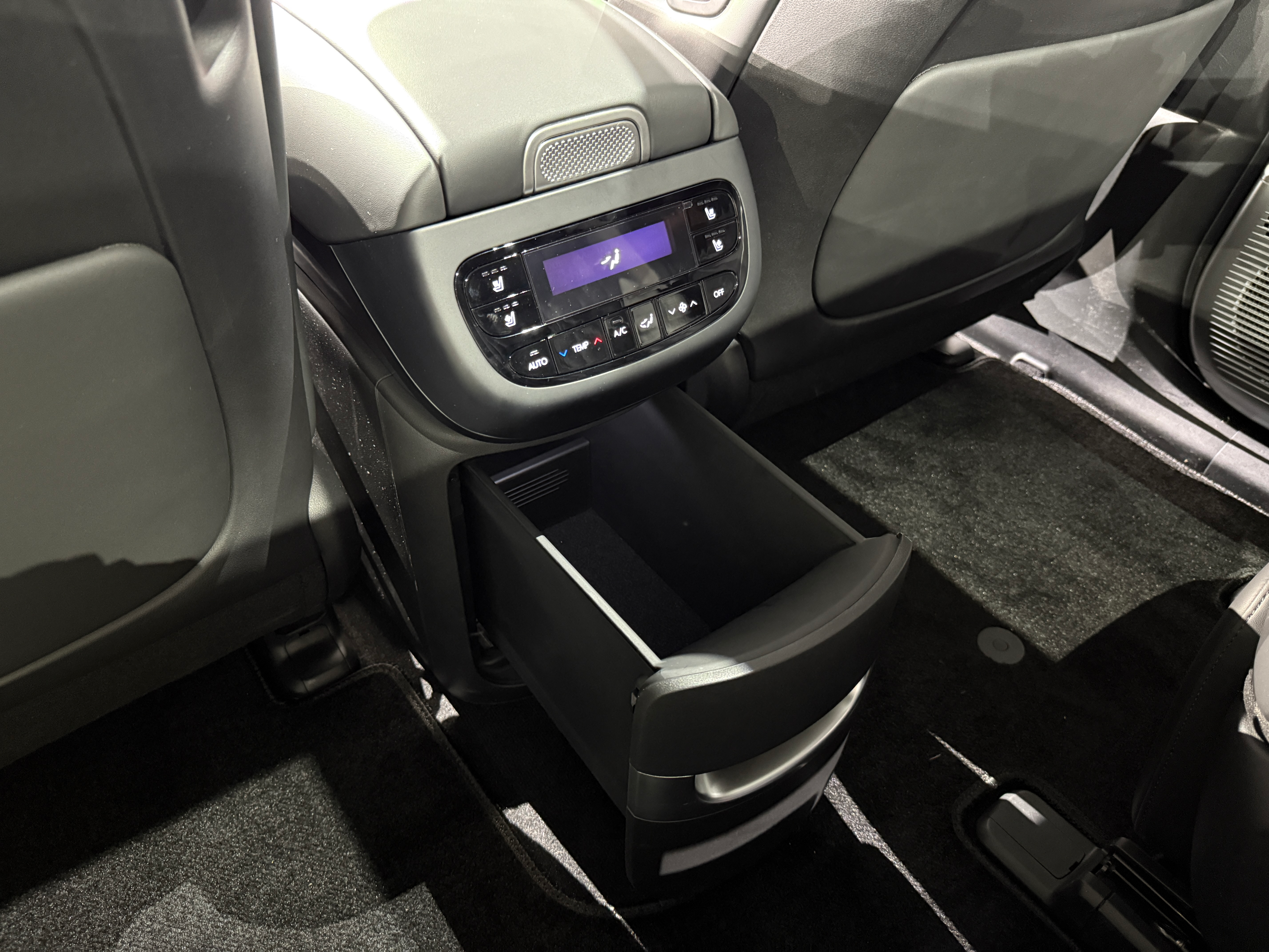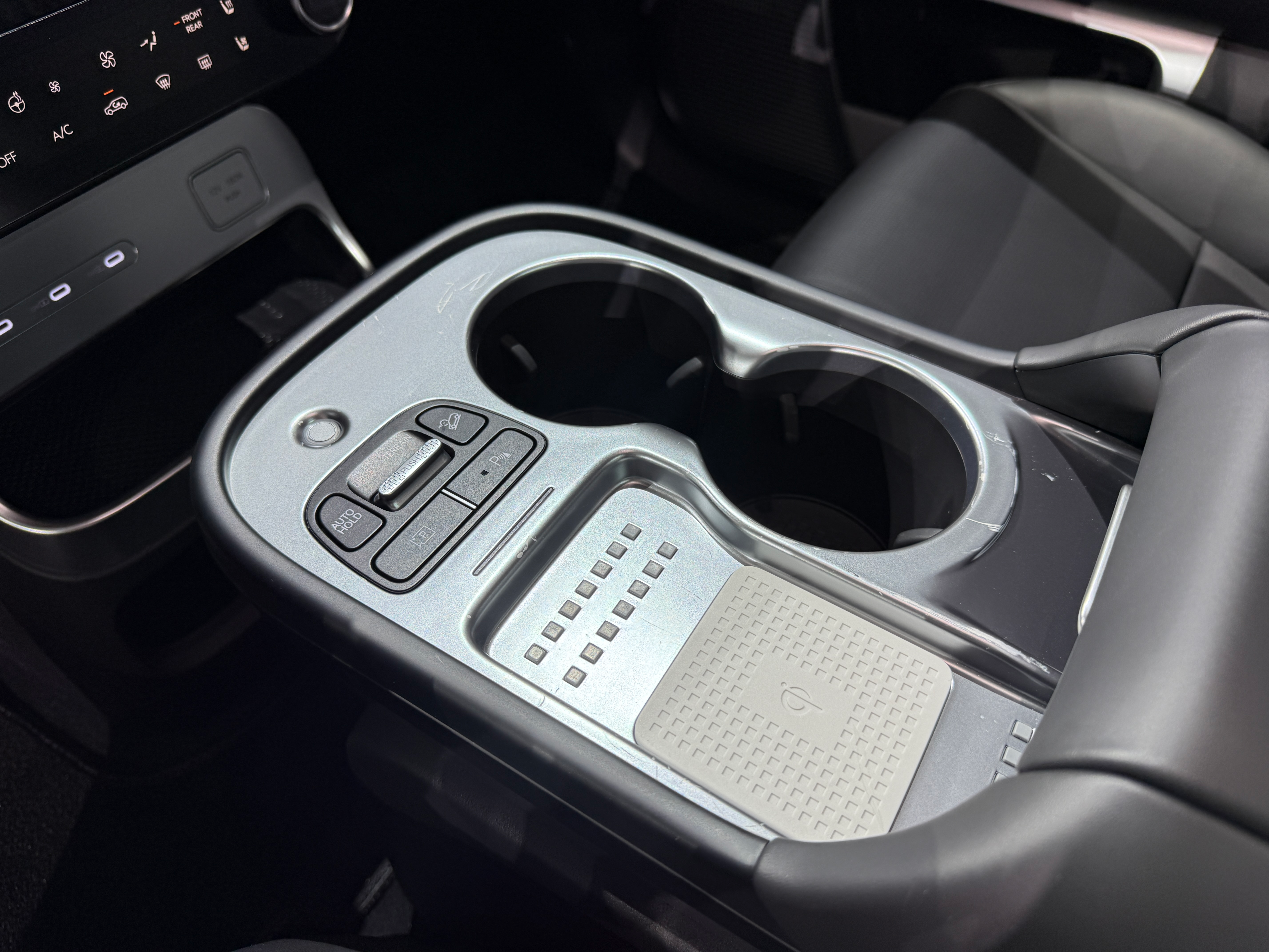 The center console can be slid back up to 7.5 inches for easier access by second-row passengers, with a split-opening lid for the massive storage cubby inside. It also has integrated cupholders, climate controls, a wireless charging pad and an additional slide-out cubby.
