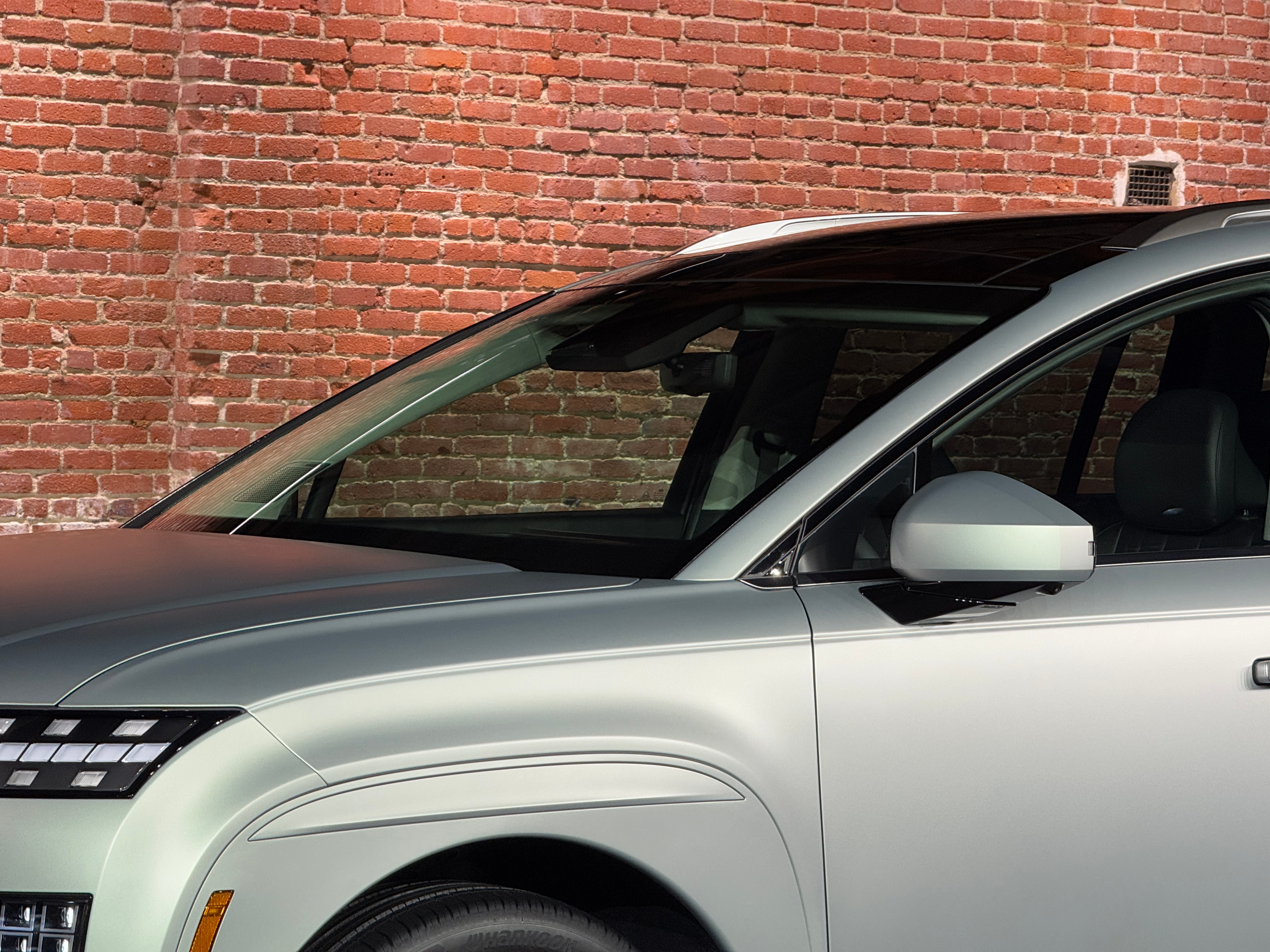 The Ioniq 9's windshield is set further forward and has a much steeper rake than most SUVs, made possible by the electric platform. The side glass is nice and flush, too.