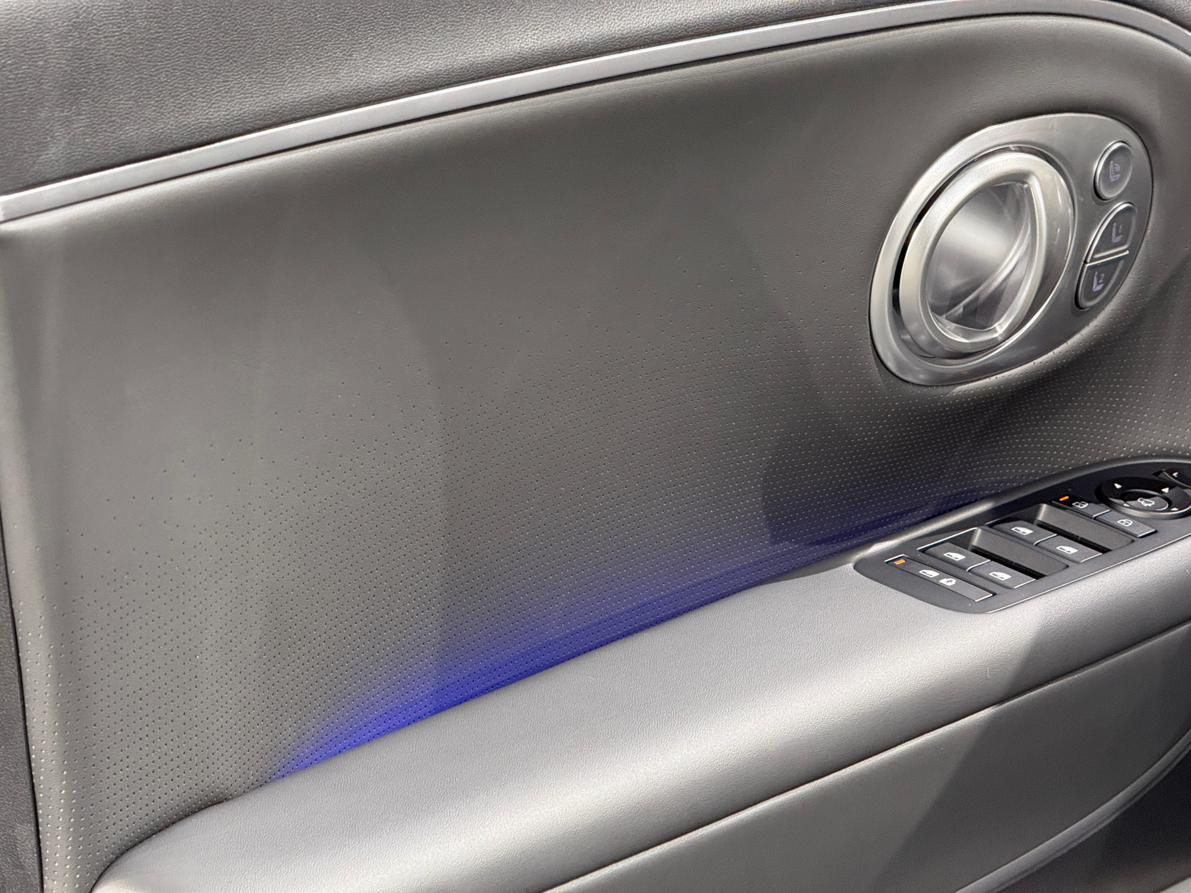 The interior has an ellipse design theme, which is especially noticeable in the door panels. The perforated surfaces look really cool.