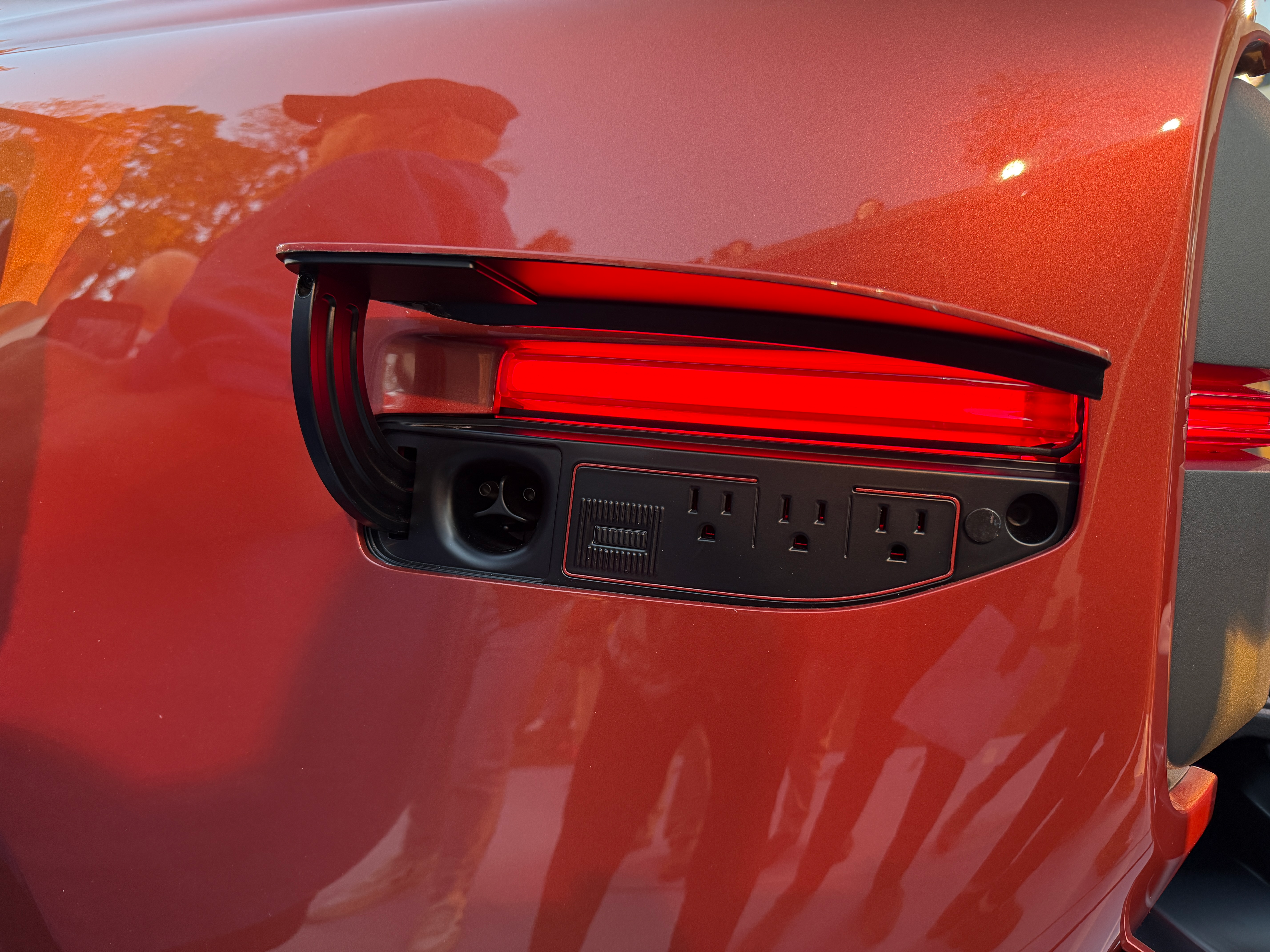 The charge port also has a bunch of power outlets within it, and I like that the side marker light is still visible even with the flap open.