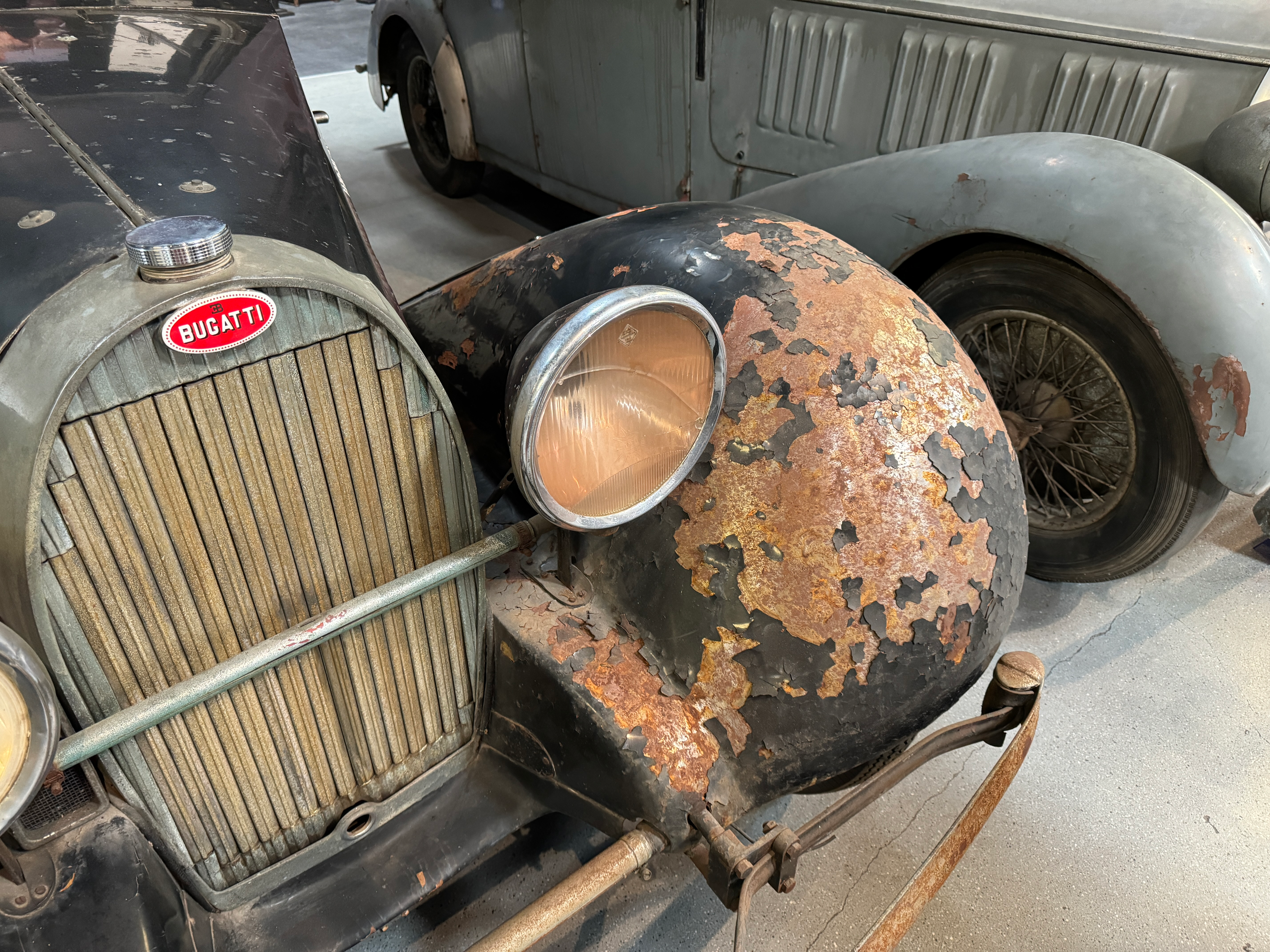 Italian-born Swiss brothers Fritz and Hans Schlumpf ran a successful textile business and amassed a collection of hundreds of cars, including the largest number of Bugattis in any one collection. After the brothers went bankrupt in the '70s and workers went on strike, they fled to Switzerland and the cars were seized by the French government. Much of the Schlumpf collection was turned into the Musée National Cité de l'Automobile in Alsace, France, but a large chunk of the cars were left in a barn to rot for decades before the Mullins purchased them in 2008. The cars have been left unrestored, and while a bit sad, I think it's amazing to see vehicles like this with such varied patinas.