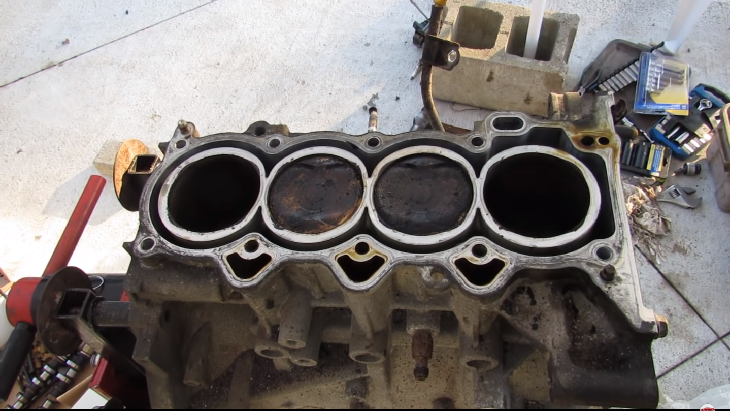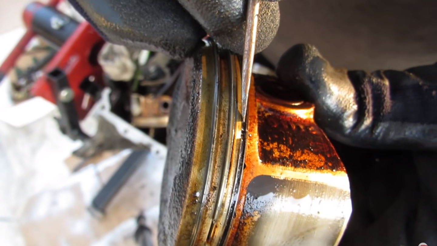 The filter in the oil pump pickup tube appeared to be pretty gunked up and the pistons have some carbon buildup on them. The bigger point of concern for the YouTuber was clogged-up oil control rings on the pistons.