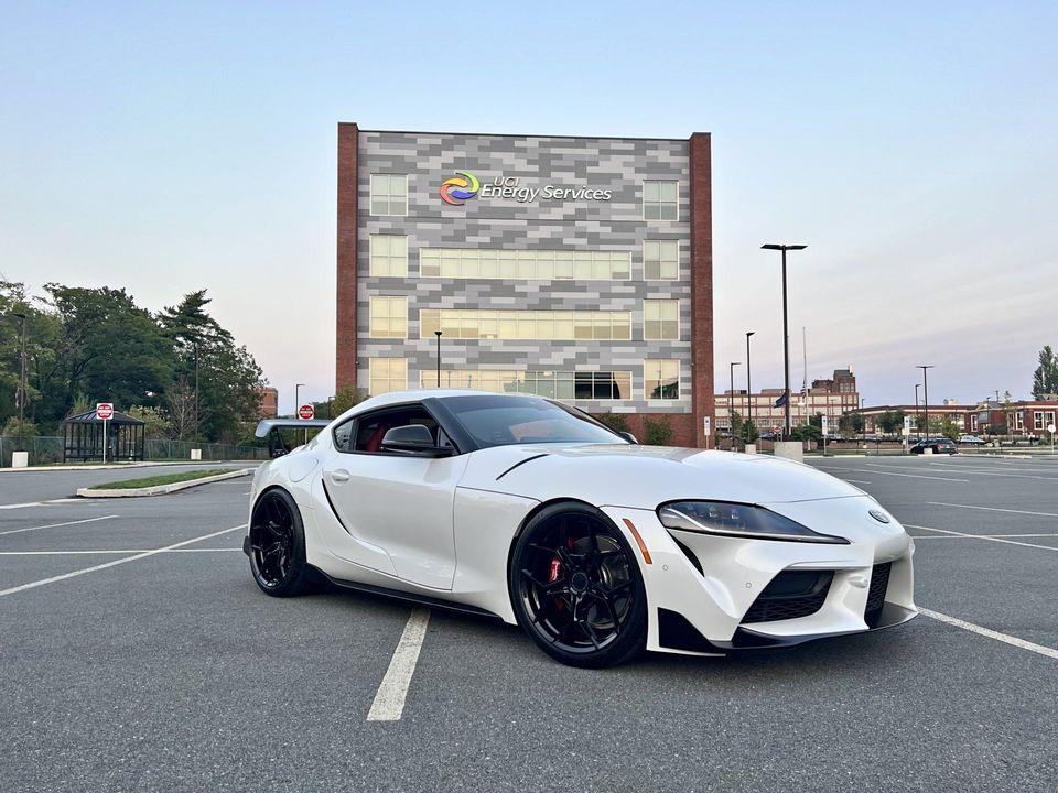 This Supra strikes me as a YouTuber situation. The car only has 6,500 miles on it, yet it's been modified in all the loud ways — visually, with the wing, wheels, and springs, and audially with the intake and exhaust.