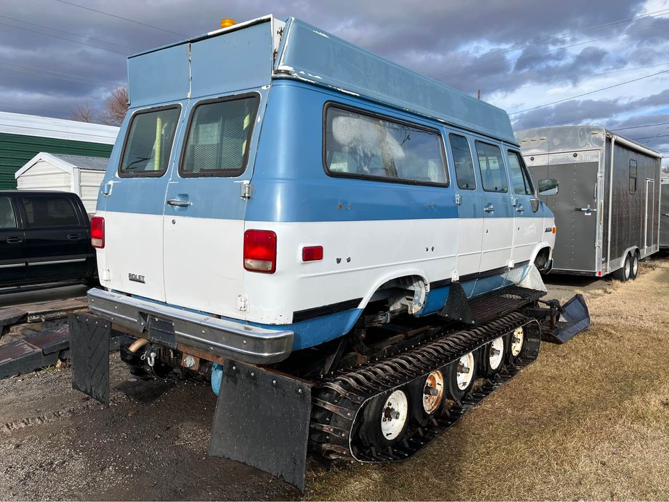 I have learned that it's possible to learn something exists and immediately have it occupy a space in your brain which will almost certainly perish if I don't have it. I am Veruca Salt and this hybrid van/snow machine is my oompa loompa, if I don't get it now I may throw a fit that will end in bloodshed. When the snow starts to fly I begin to wonder why I've never owned any cars with tracks and skis. This is my opportunity, that is, unless one of you sneaks in and buys it out from under me. This Chevrolet G20 on a Bombardier snowcat chassis is calling to me from the depths of Facebook Marketplace, and fittingly I learned about its existence from a tweet.