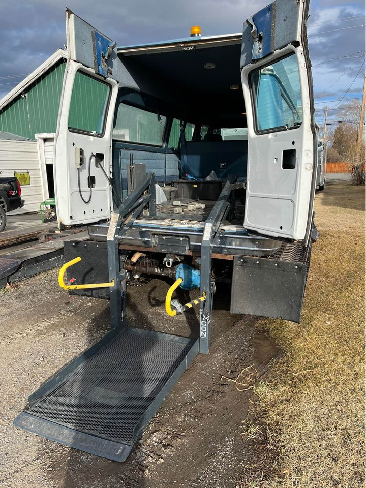 The van this monster is based on was built in 1993, and retains small block Chevrolet V8 power. This high-roof van was later converted to haul a wheel chair as the back barn doors open to reveal a high-clearance wheel chair lift. After its serviceable life in that capacity, it was jacked up and fitted to a set of tank tracks with steering skis at the front. I'd love to know more about this van's life progression, because it must have a fascinating story.