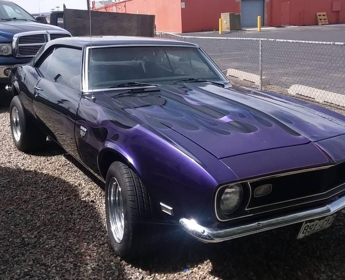 It's just a color. A particularly good color, in my opinion, when it's draped over the front end of a '68 Camaro. The seller calls these "Purple Ghost Flames" — does that not sound rad as hell? Bring back purple on cars. Please.