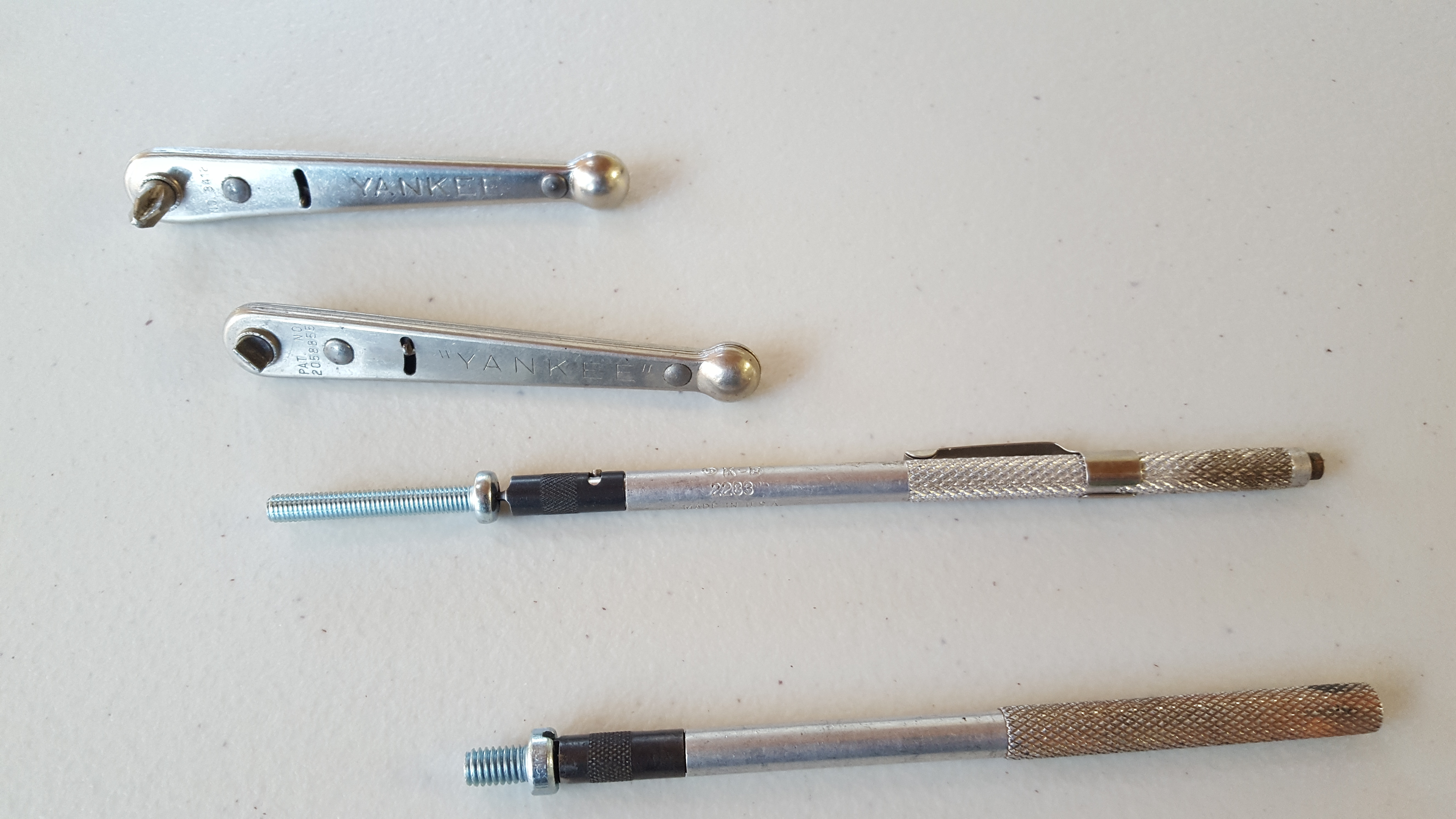 The screw starters are available from GEARWRENCH and are extremely affordable. The Yankee offset ratcheting screwdrivers reader knowonelse uses are vintage, but lots of companies are making them nowadays for great prices. Check your preferred tool sites for them!