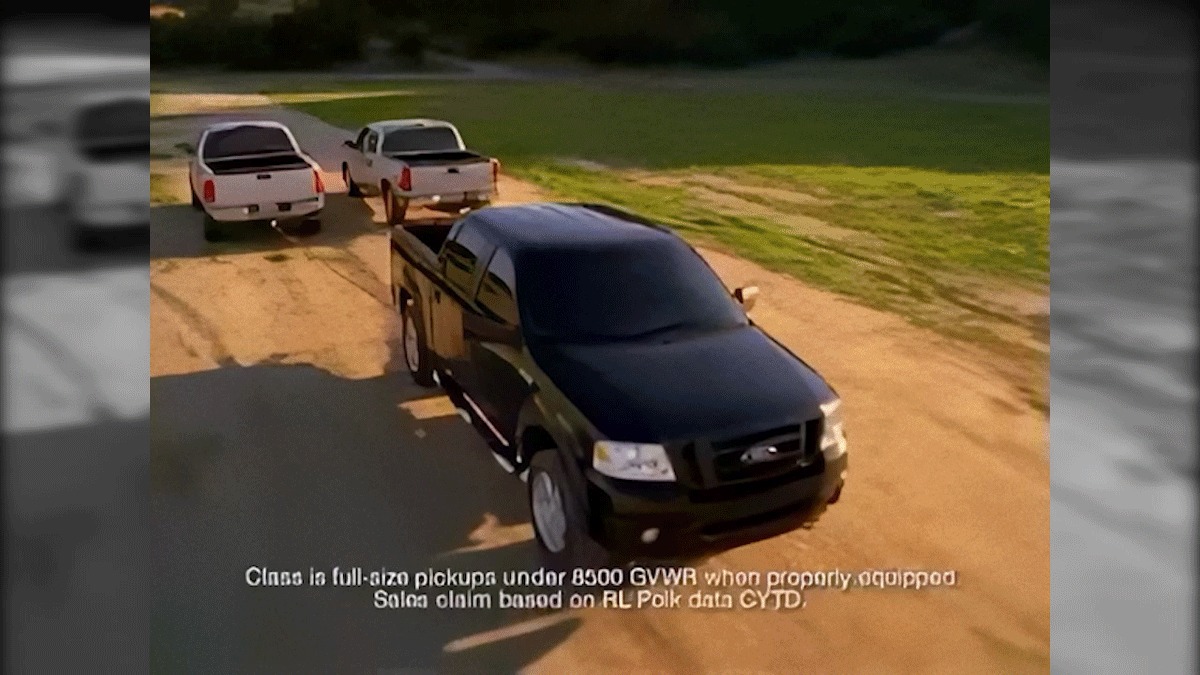 As Keith somehow pulls away the two other trucks with his F-150, a narrator reads through all the features and accolades we're all familiar with. You know, best in class for an obscene number of years and Built Ford Tough. The ad spot naturally featured the late country music star's anthem for the automaker, "Ford Truck Man." The only other song by Keith that better defined the decade was "Courtesy Of The Red, White And Blue," Halliburton's corporate anthem.