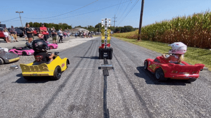 The modified racers come with skinny little wheels and tires up front, chunky slick wheels to get all the power down at the rear and a 24 volt powertrain to provide the oomph off the line. In videos of the creations running races, Teter shows them hitting 18 mph on a 60-foot drag strip with ease thanks to the modifications.