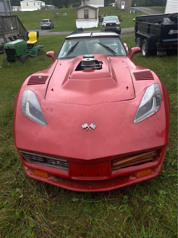 Yeah, I don't really know what's going on here either. A C3, a late C3, with a front end extended to accommodate C7 headlights? It looks bad. You should buy it as a bit. That's about all the salespersonship I've got on this one.