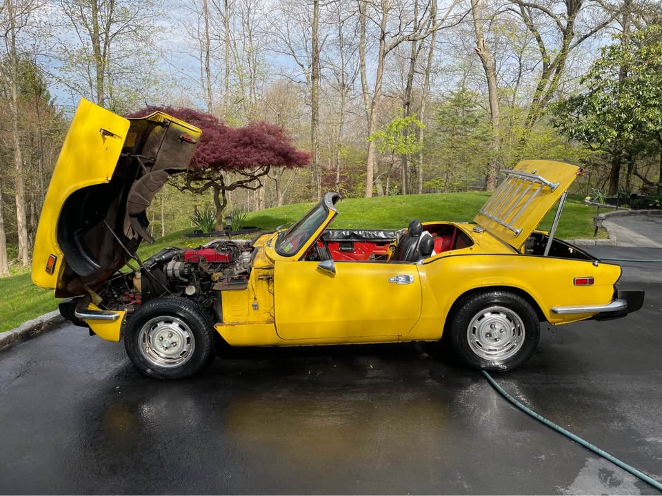 I said up top that people are unloading their projects before winter, and here's a perfect example. This Triumph Spitfire was stripped down, prepped for work, and then the air started to turn chilly. Now it's an unfinished project looking for completion.