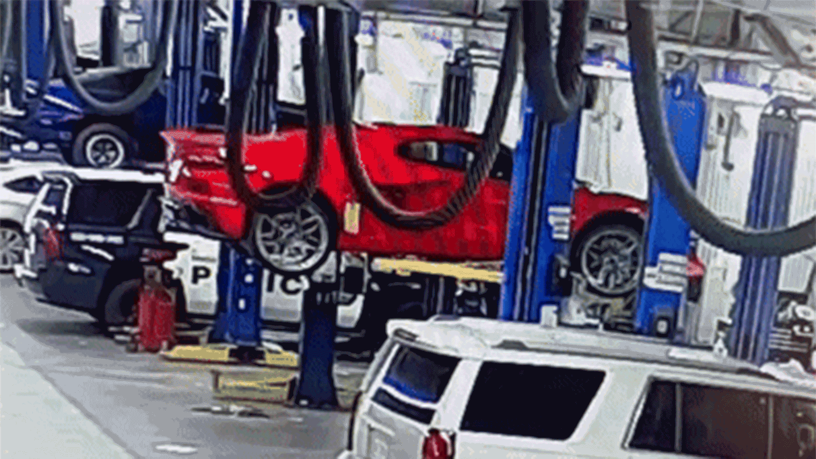 But how do you drop a Corvette, I hear you ask. Well, security footage shared online shows a gleaming red Z06 propped precariously on an inspection lift in a U.S. dealership. For a few seconds, the Corvette balances still, before its rear end plummets to the ground.